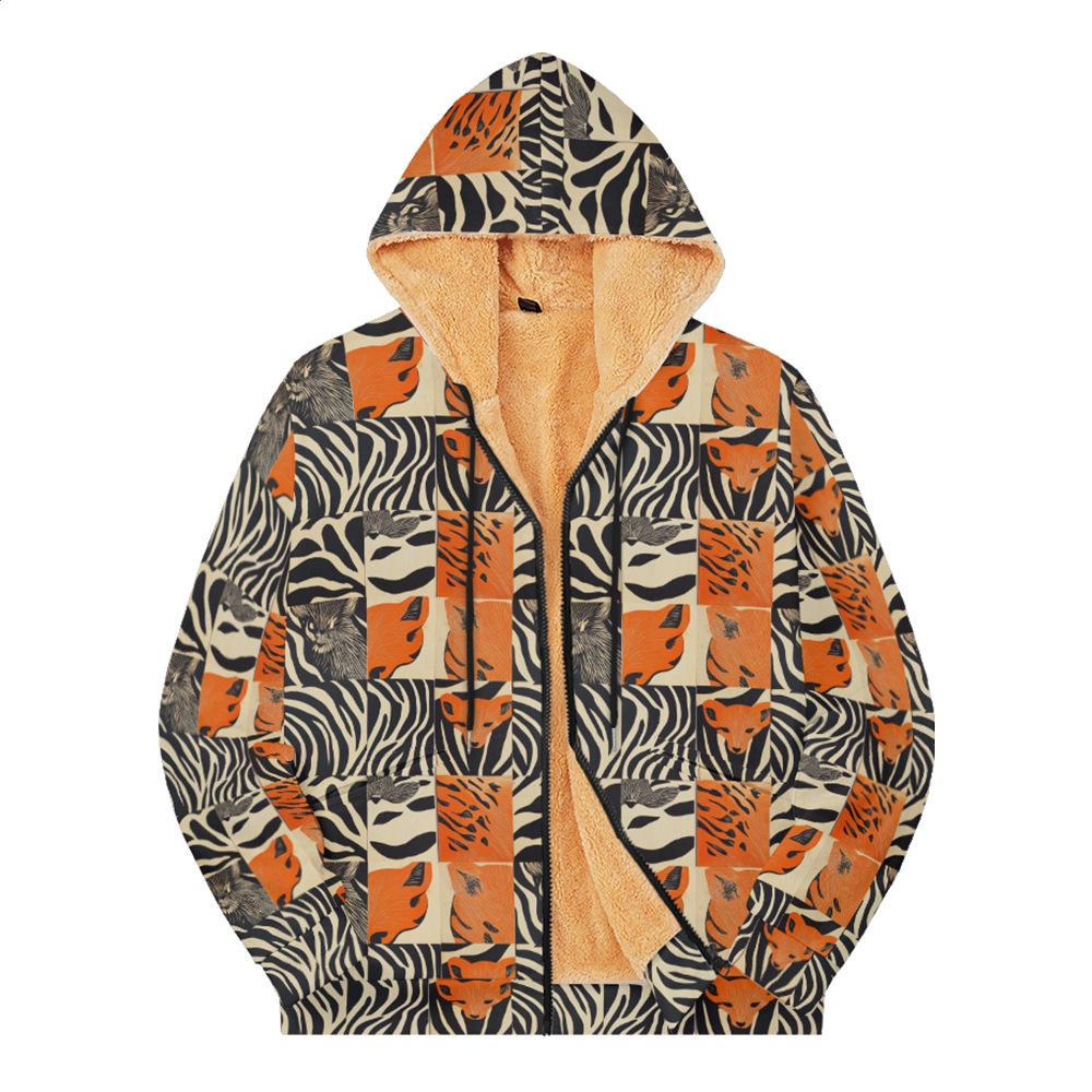 Patrón multicolor transfronterizo de Europa y Estados Unidos, impresión digital 3D, sudadera con capucha y cremallera con forro polar, forro amarillo, chamarra acolchada de algodón 13