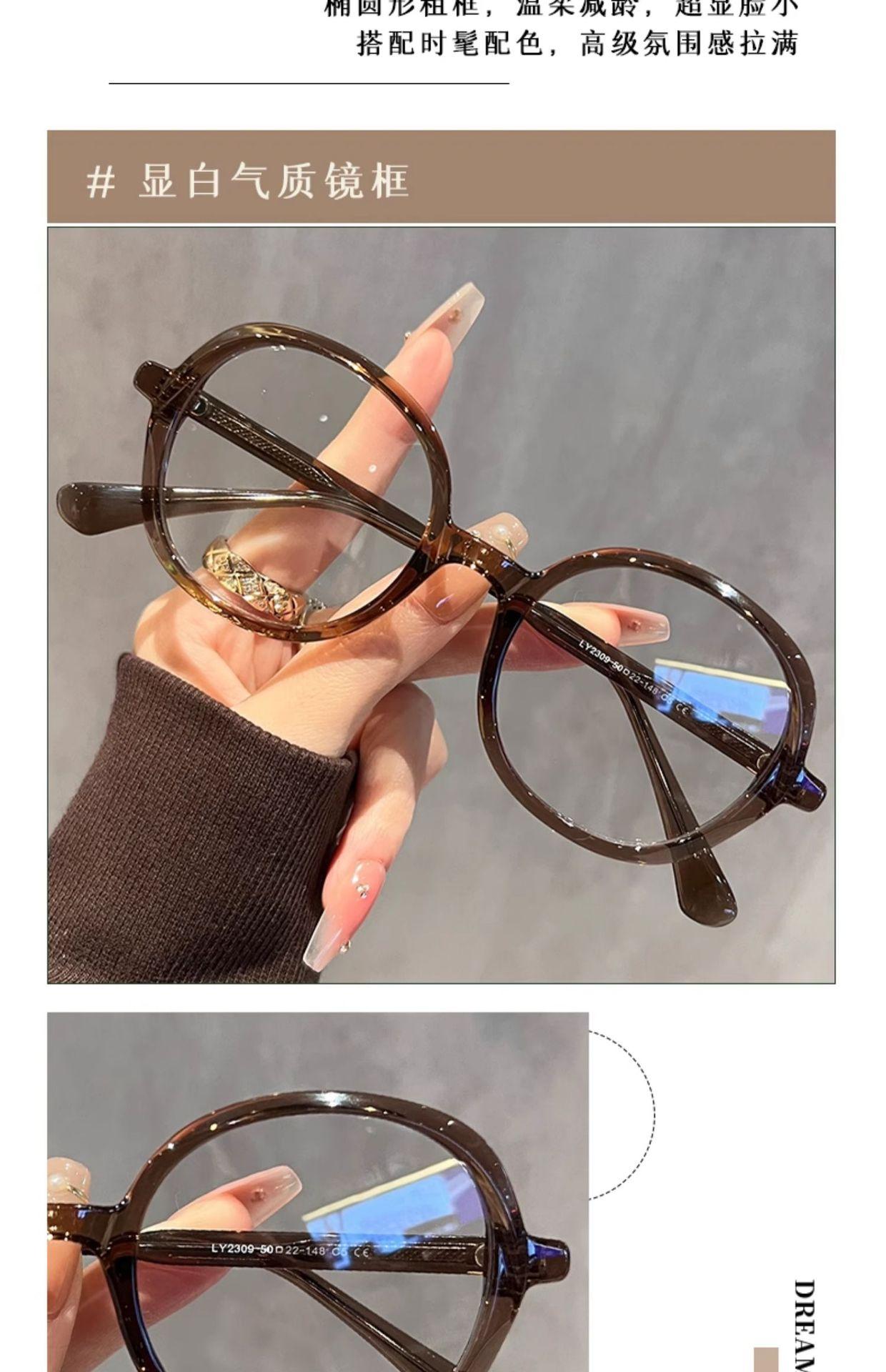 Armazón de Gafas Marrón Frío Retro Ultraligero para Mujer, Ovalado de Una Pieza Sin Puente Nasal Borde Grueso Blanco Liso para Ojo