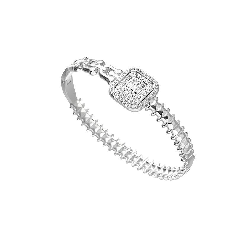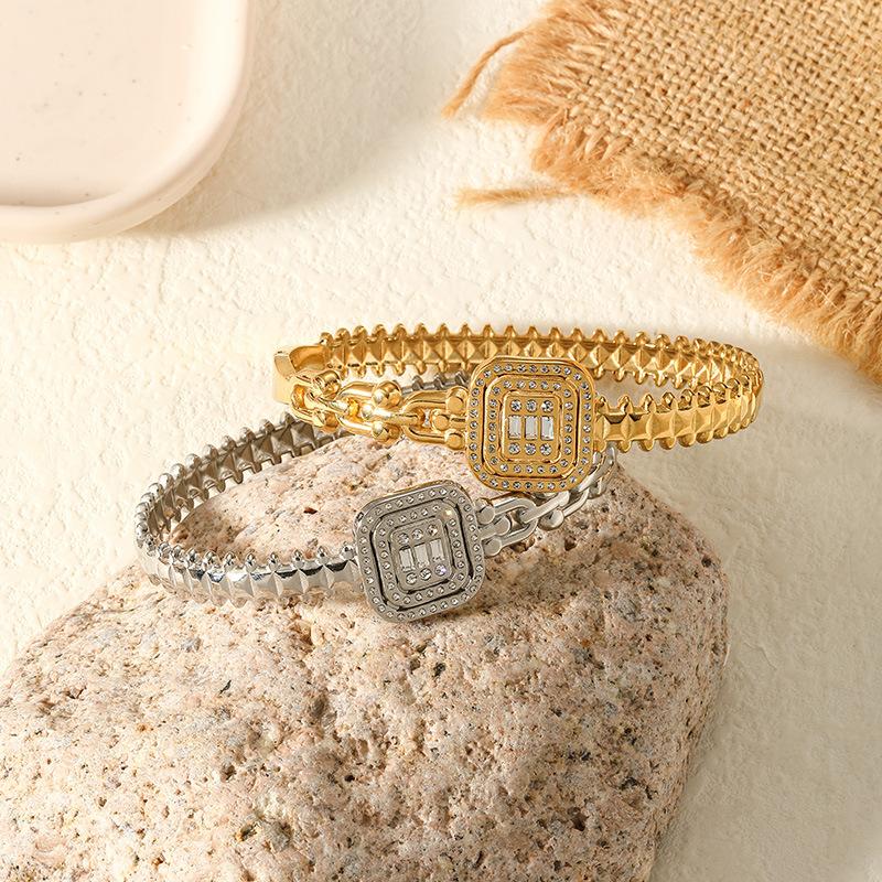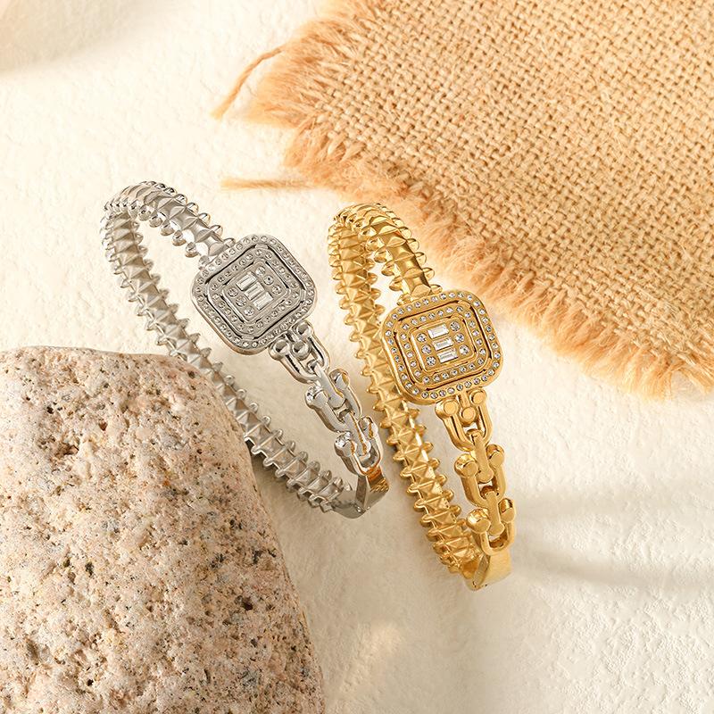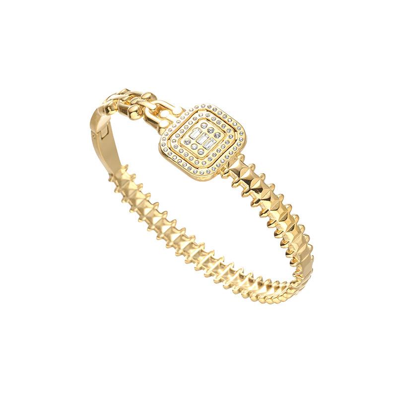 Pulsera Europea y Americana de Acero Inoxidable de Lujo Ligero Moda para Mujer Diamante Cuadrado Joyería de Oro de 18K Nicho Transfronterizo Pulsera Versátil