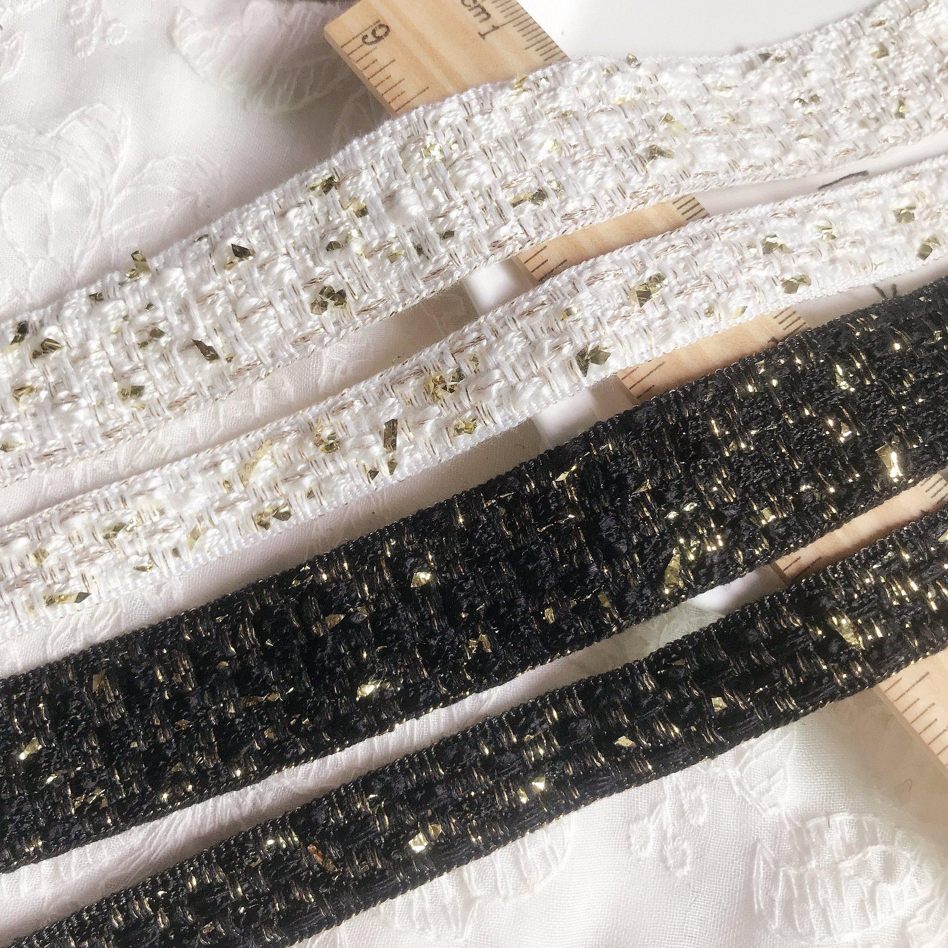 9,9 al por mayor, oro blanco y negro y plata con oro roto de 2,5 cm de ancho, pequeño estilo fragante, ropa, zapatos y sombreros de bricolaje, cinta de encaje
