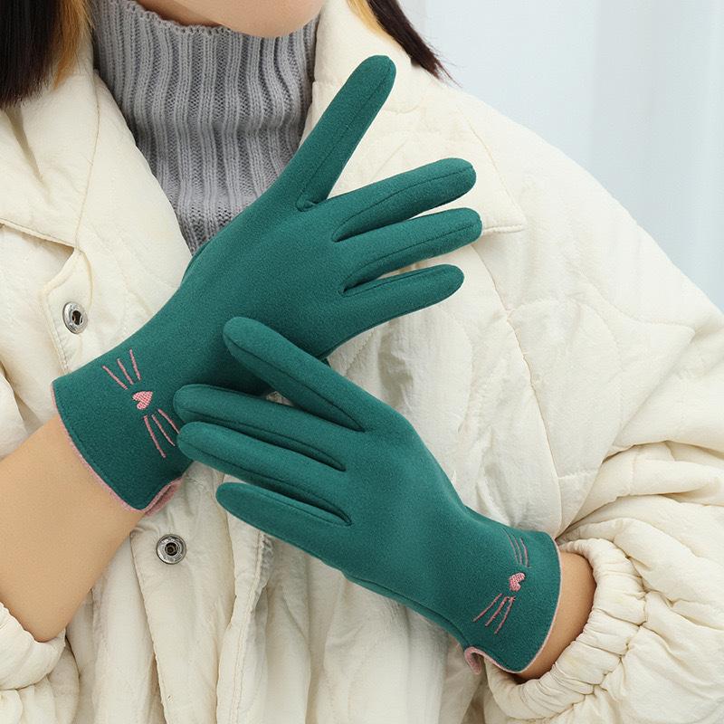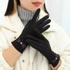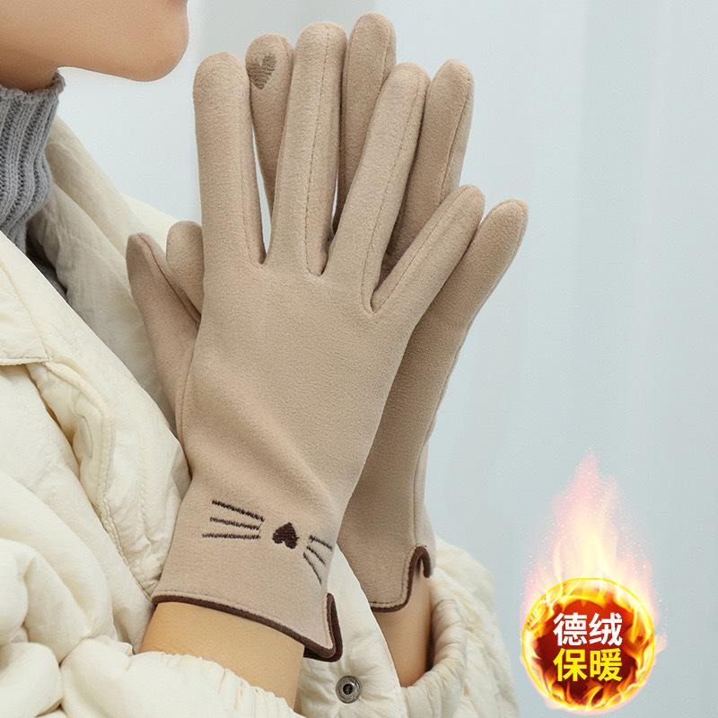 Guantes de terciopelo bordados, sencillos y bonitos para pantalla táctil, para otoño e invierno, gruesos, resistentes al frío y cálidos, para montar en invierno, a prueba de viento