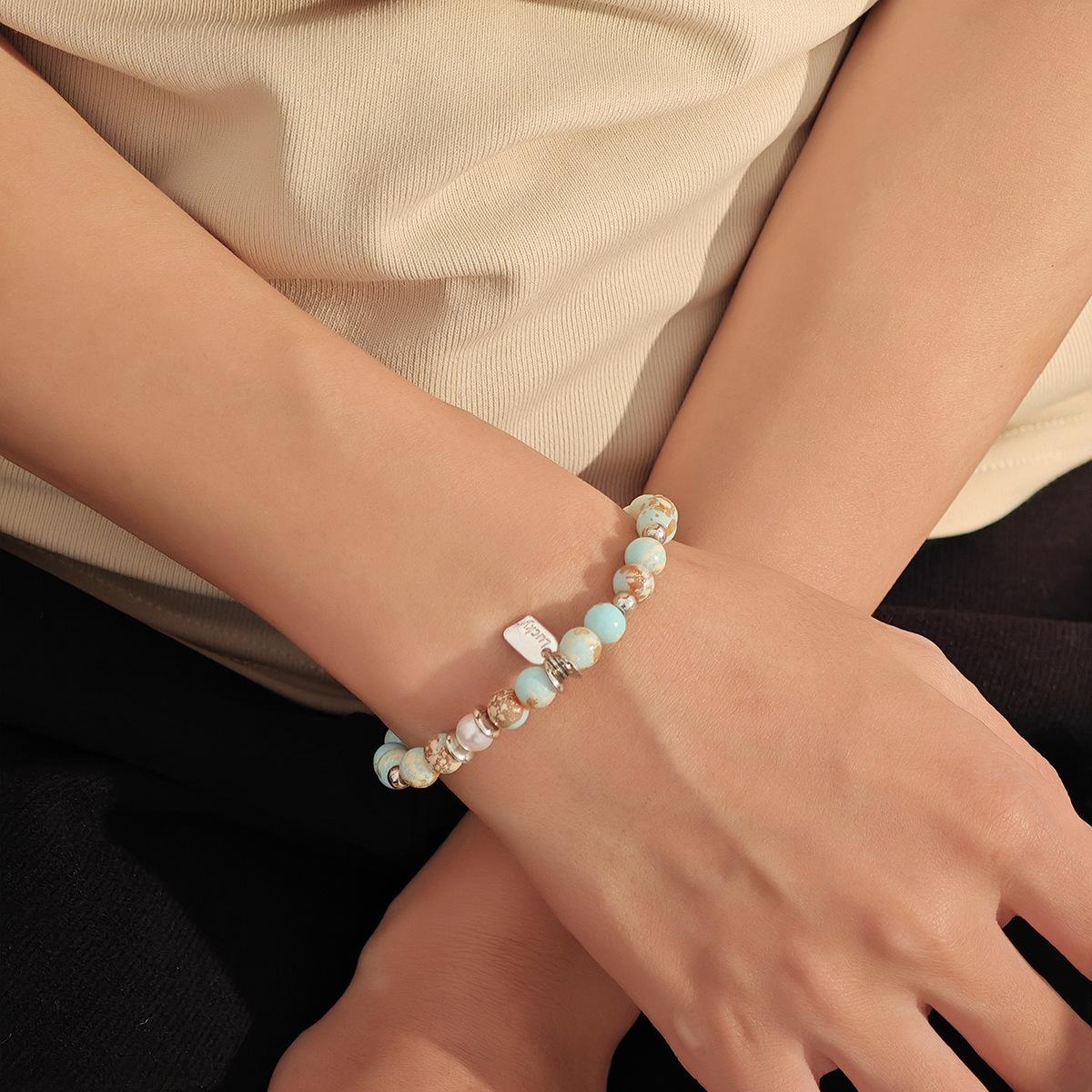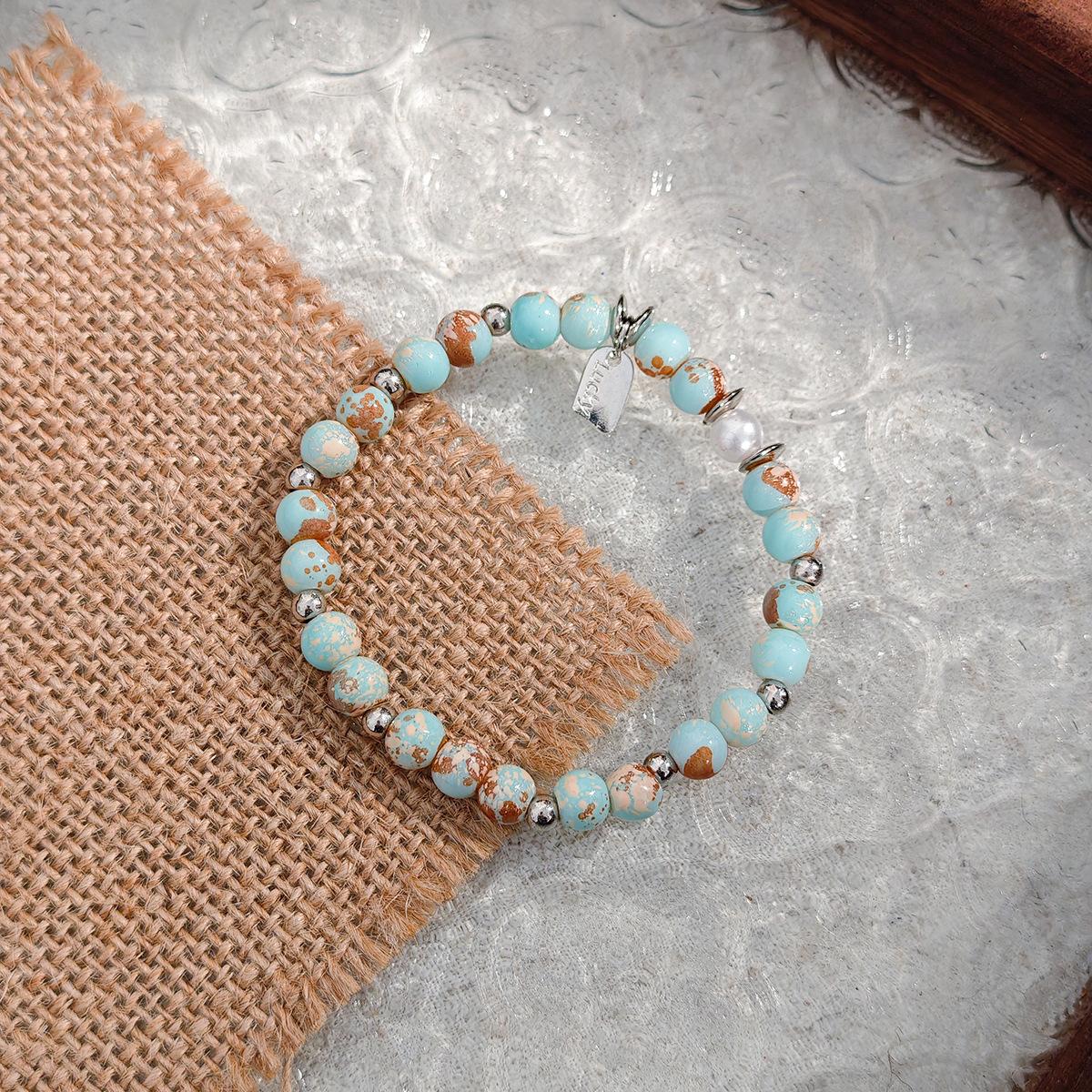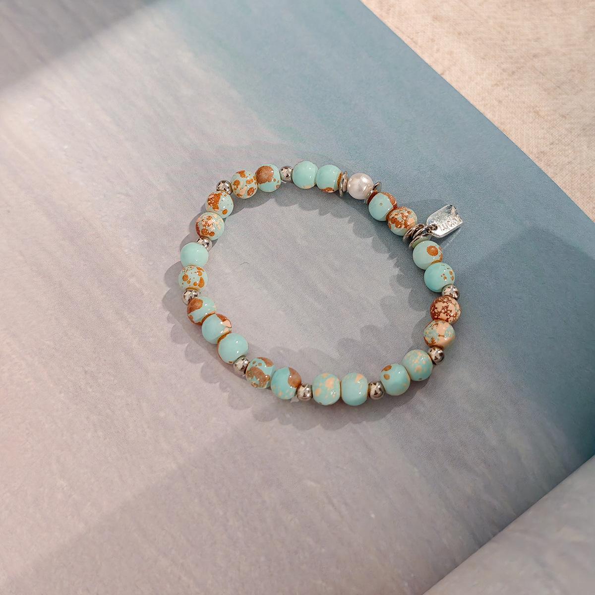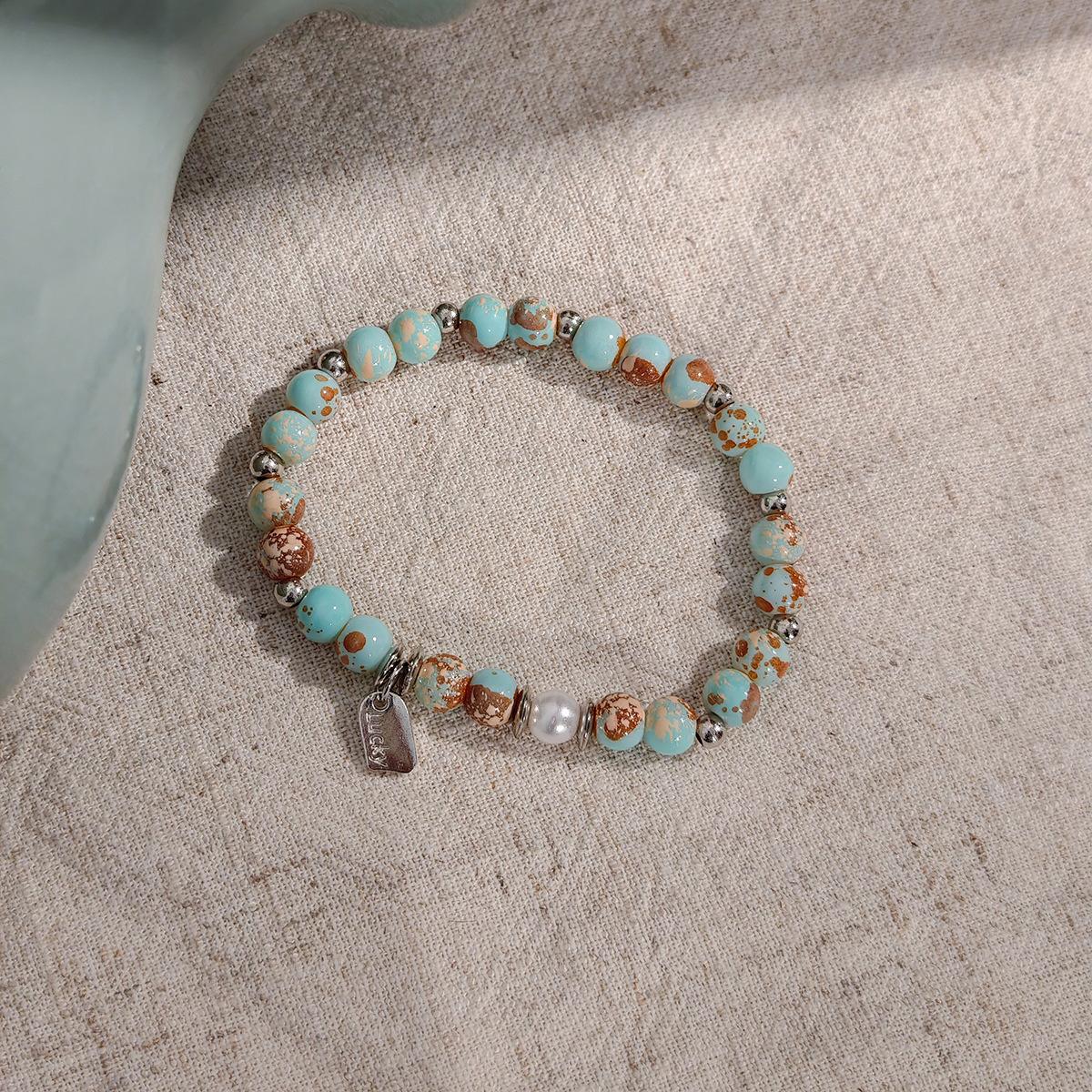 Pulsera Telescópica de Cuentas de Color Azul Estilo Chino Nuevo Retro Moda Nacional Lujo Ligero Sentido de Alta Gama Estilo Ins Pulsera Elegante de Moda