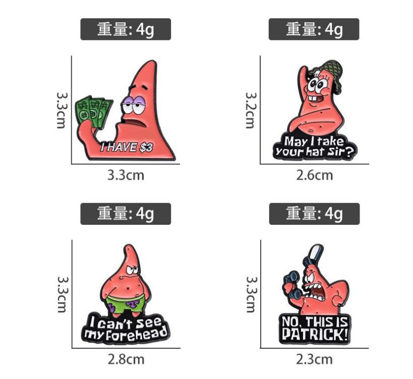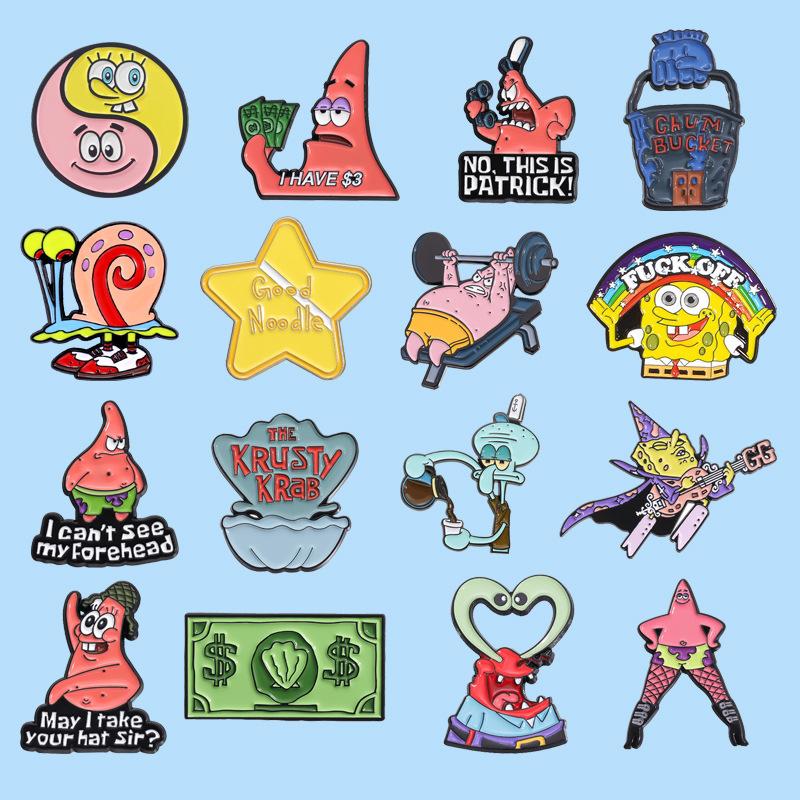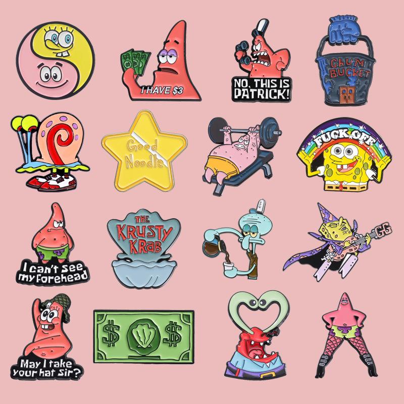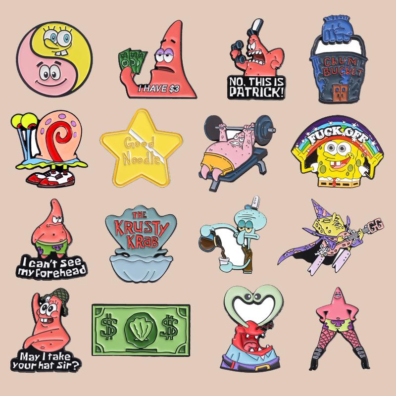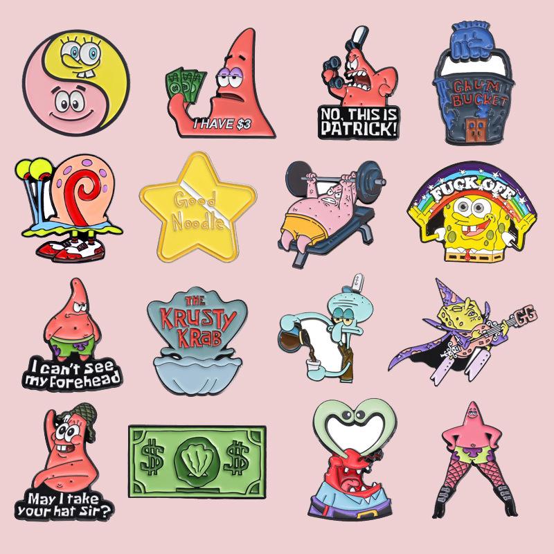 Broche de combinación periférica de película y televisión de animación de dibujos animados transfronterizos con diseño creativo de estrella de mar con esponja y insignia de modelado