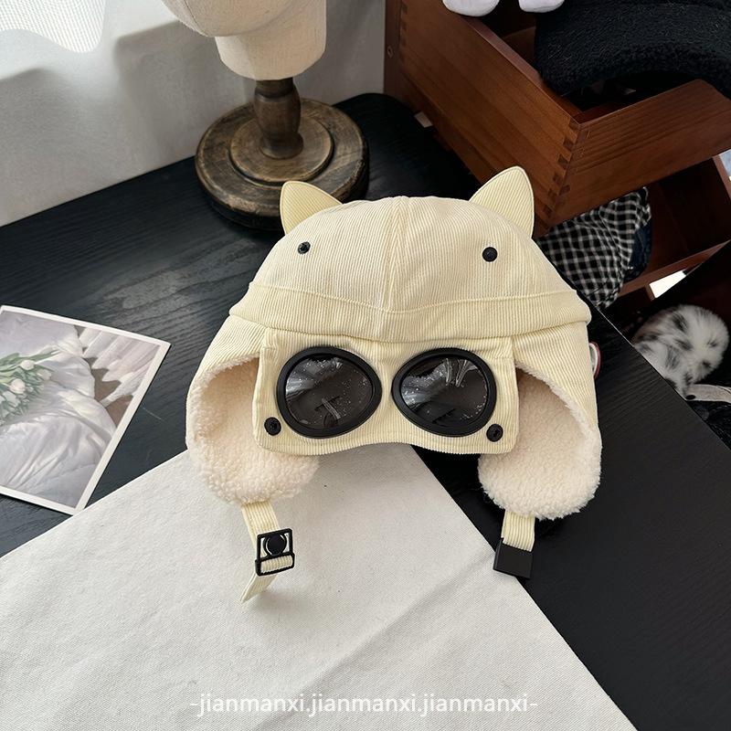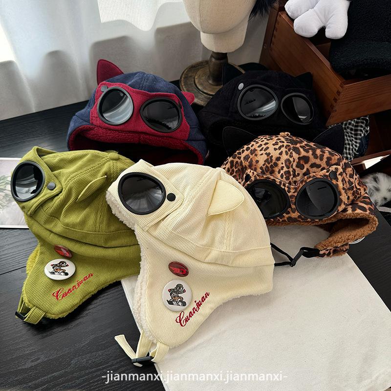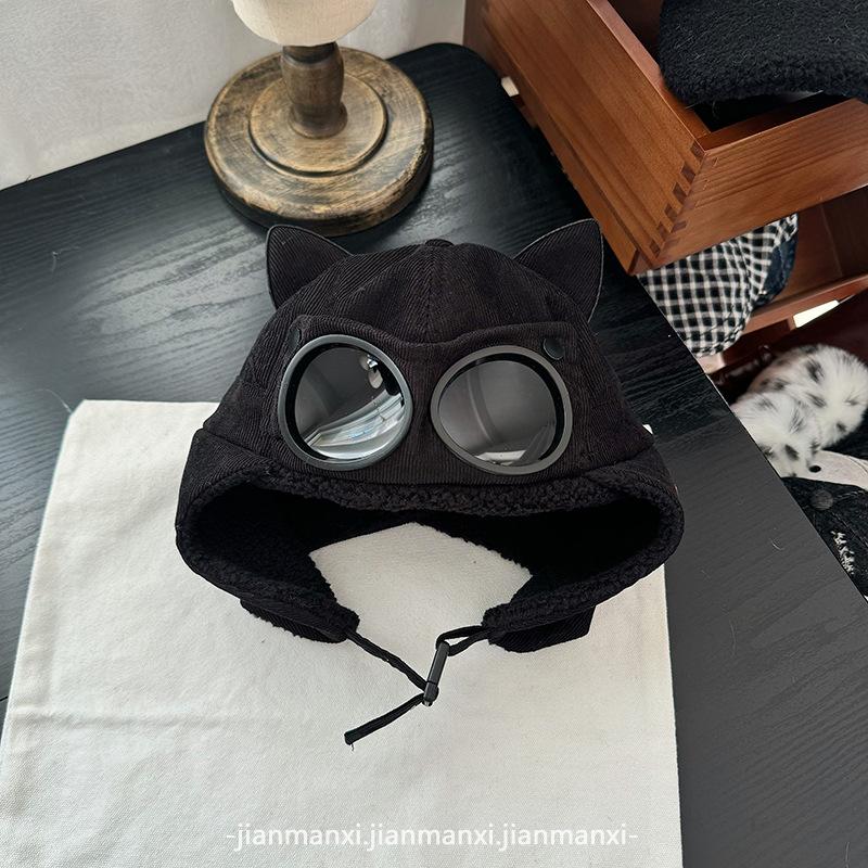 Sombrero de Aviador con Orejas de Gato Lindas para Padres e Hijos, Gafas, Sombrero Lei Feng, Gafas de Sol para Mujer, Protección para los Oídos, Cálido Forrado con Polar, Sombrero de Vuelo