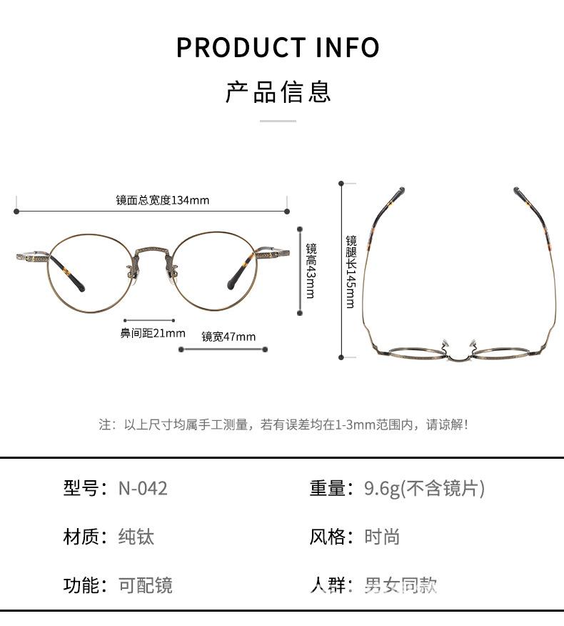 Las gafas con montura ovalada retro de titanio puro Naito Kumahachisaku N-055 se pueden combinar con gafas planas con placa de luz azul anti-grado.