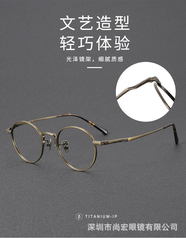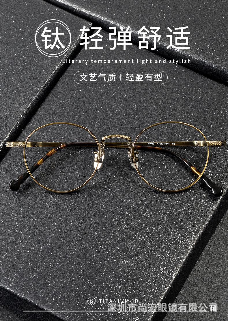 Montura de gafas redondas retro para mujer, diseño de celebridades de Internet, con cara lisa, N042, compatible con miopía, montura de titanio puro para hombres.