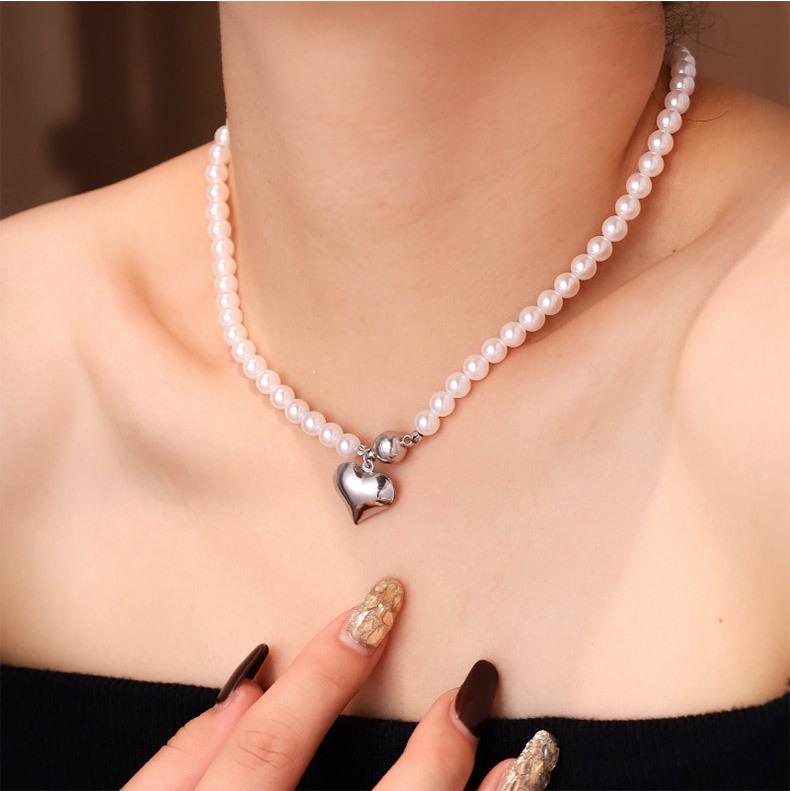 Collar de perlas de amor estéreo con hebilla magnética, joyería elegante de nicho, personalizado, ligero, de lujo, cadena de clavícula para mujer para las cuatro estaciones