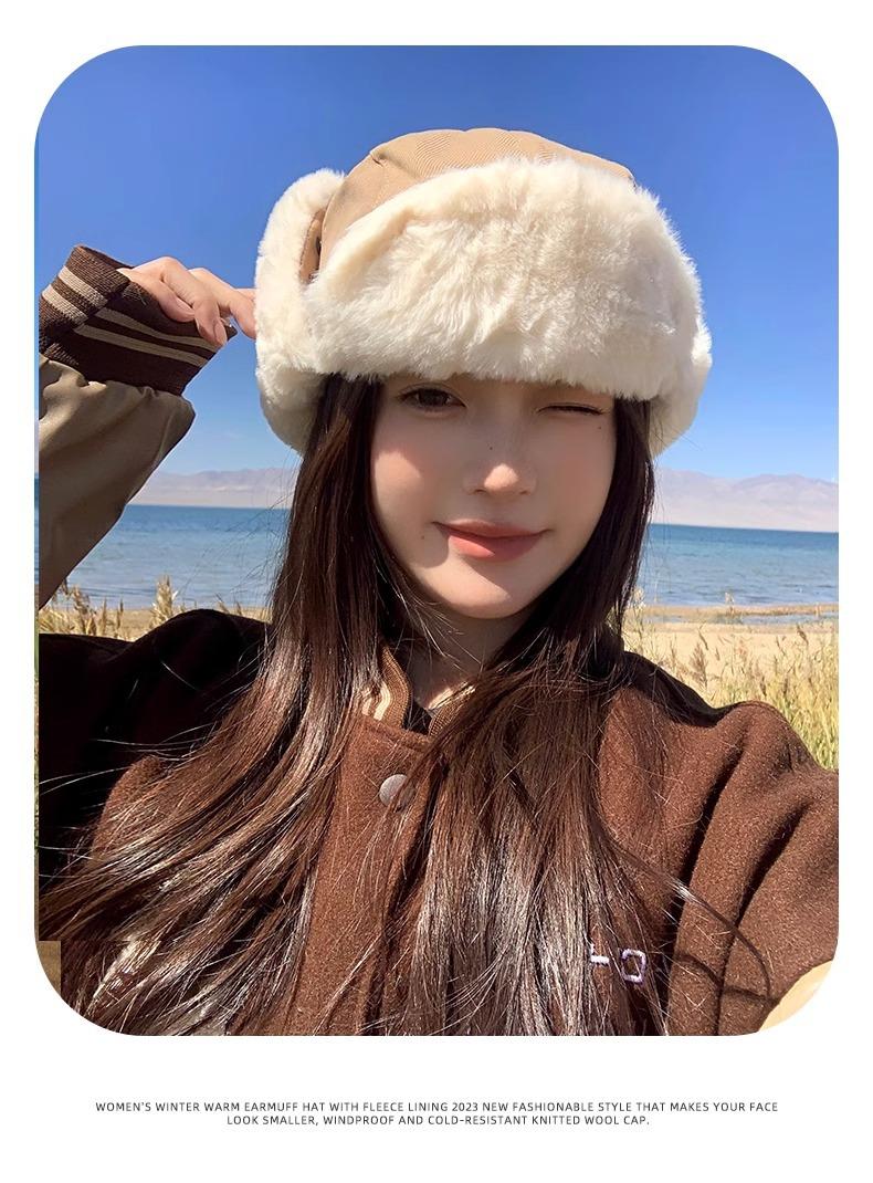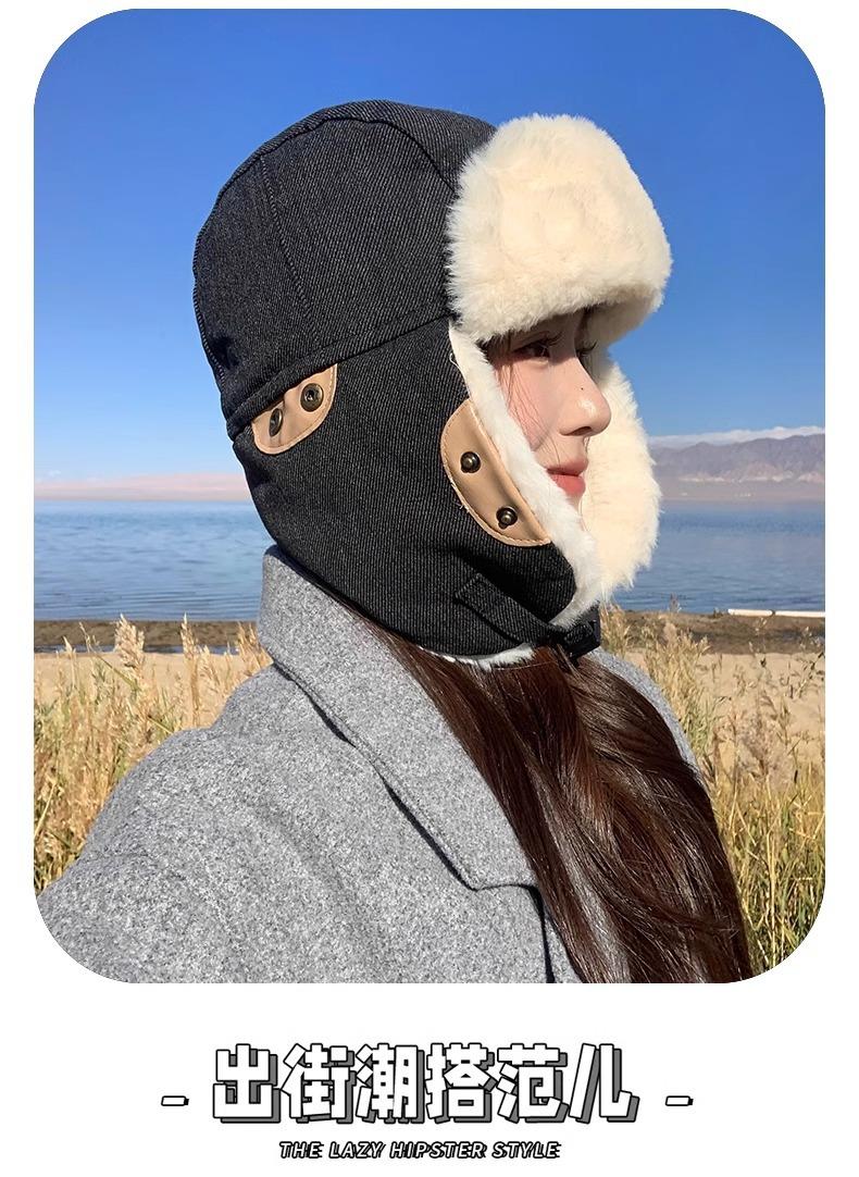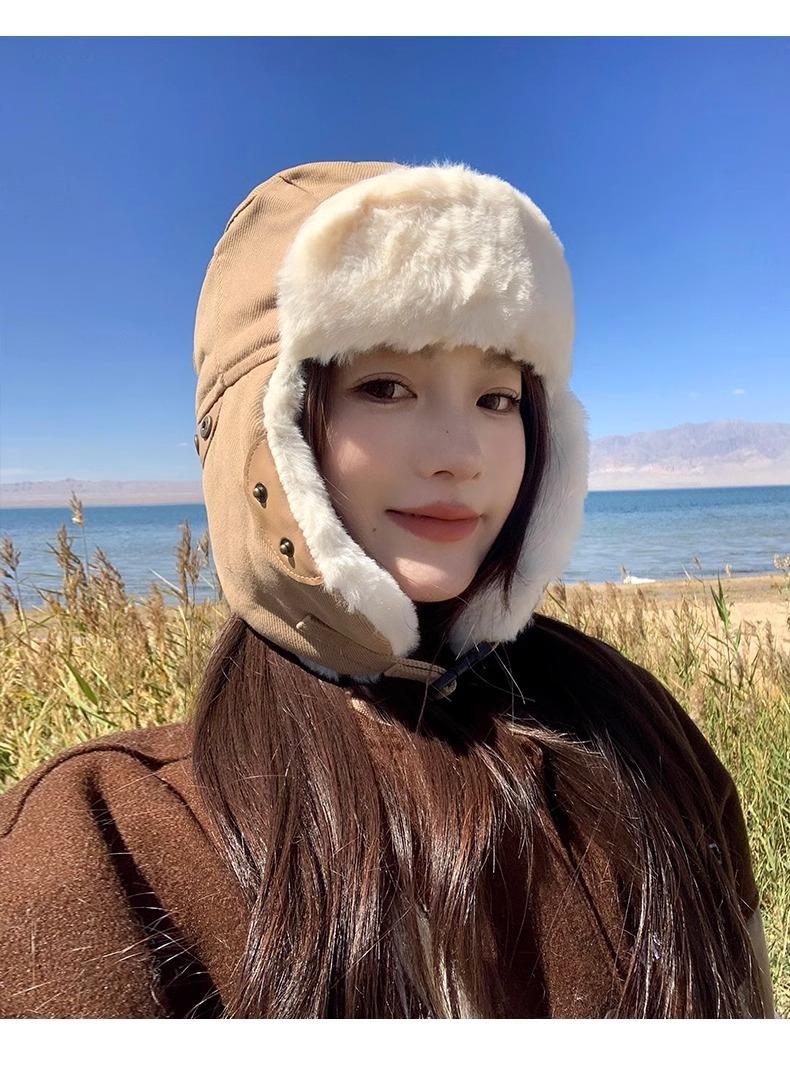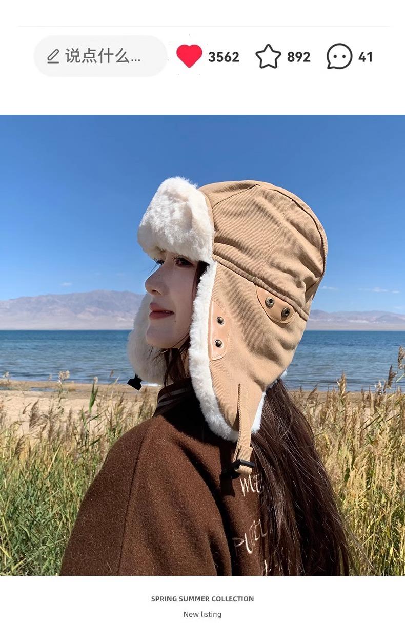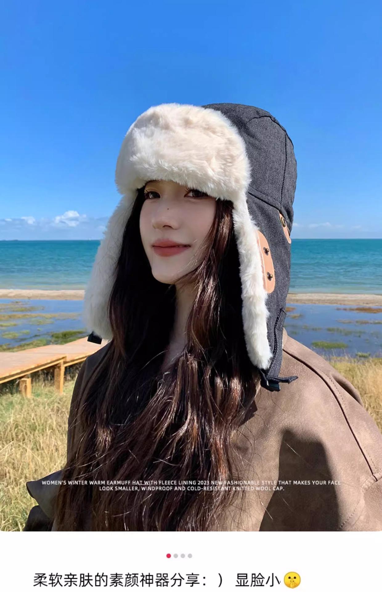 Sombrero Damas 2024 Invierno Nuevo con forro polar Engrosado para Ciclismo al Aire Libre Vehículo Eléctrico Artefacto Cálido a Prueba de Frío Sombrero Lei Feng