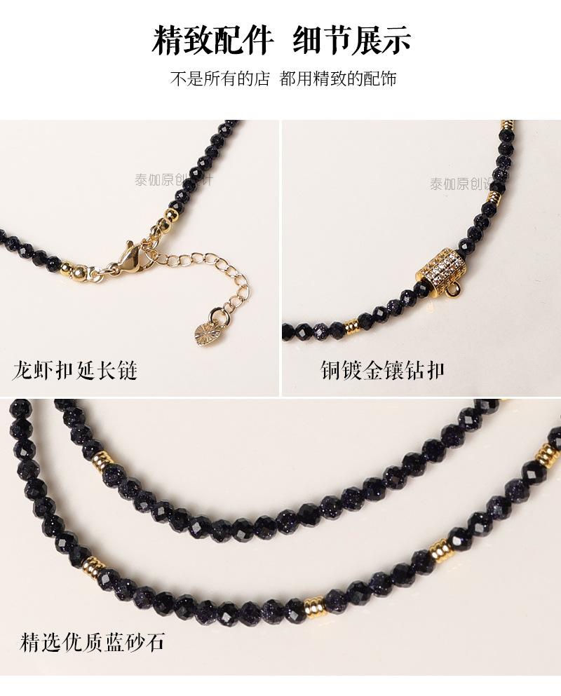 Collar Corto de Piedra Arenisca Azul Luz de Estrella Cadena Clavícula Nicho de Alta Gama Lujo Ligero Collar Cadena Accesorios Verano Universal Hebilla de Liberación Rápida
