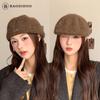 Boina de otoño e invierno, moda informal con etiqueta de metal, gorro de pintor, gorro cálido para compras al aire libre, cara pequeña