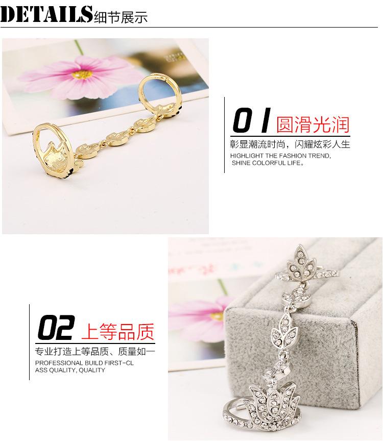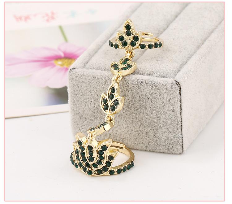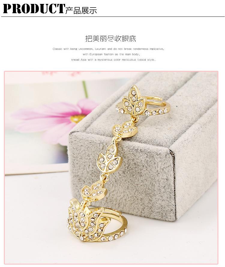 Pulsera abierta de diamantes de moda europea y americana, anillo con cadena integrada, cadena de garra de diamantes completa, cadena para el dorso de la mano, joyería nupcial al por mayor