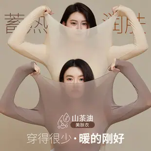 Ropa de Otoño para Mujer y Ropa Interior Larga Aceite Esencial de Camelia Mascarilla Facial Ultrafina Ropa Embellecedora de la Piel 10A Antibacteriana Conjunto de Ropa Interior Cálida Capa Base