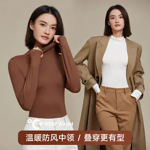 Top Cálido para Mujer Camelia Cuello Semi-Alto Amigable con la Piel Ropa de Otoño Sin Costuras Invisible Ropa Interior Capa Base Versátil