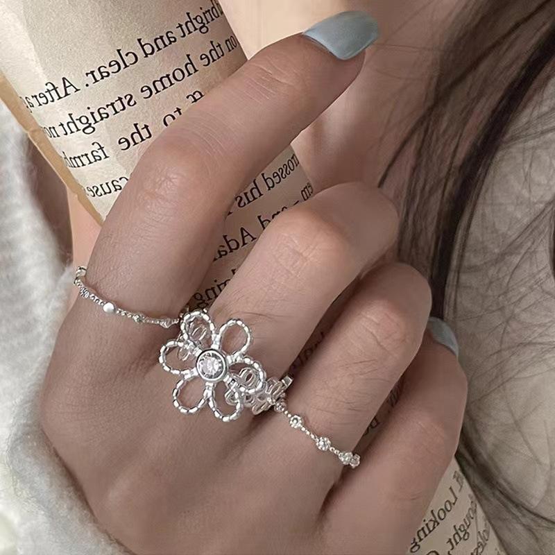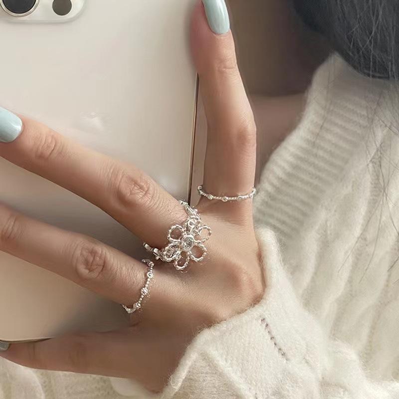 Diseño Nicho Estilo Pastoral Anillo Hueco Anillo de Flor Grande Círculo de Temperamento Simple Joyería de Anillo de Flor Pequeña