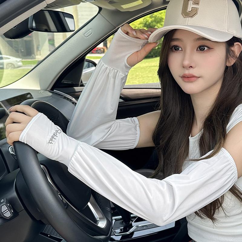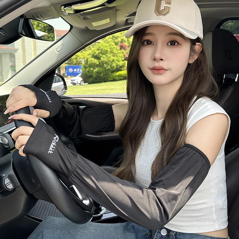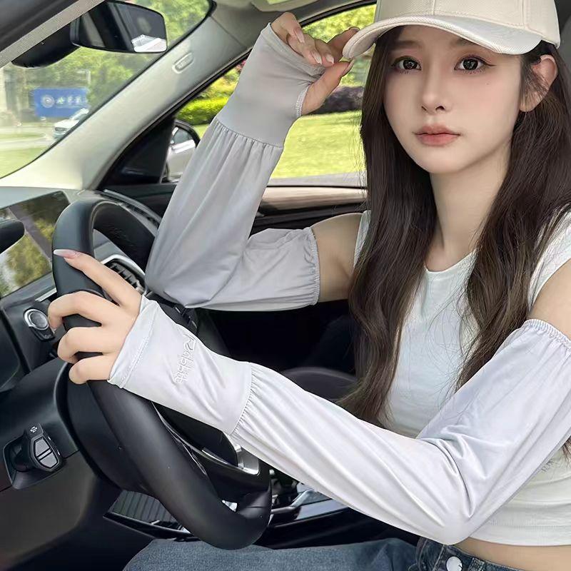 Manga de protección solar de verano para mujer, fina, holgada, sin piel, resistente a los rayos UV, para exteriores, conducción, seda helada, protección solar para el brazo