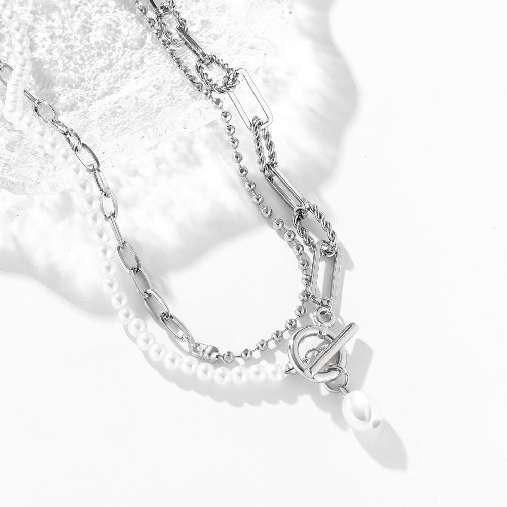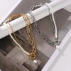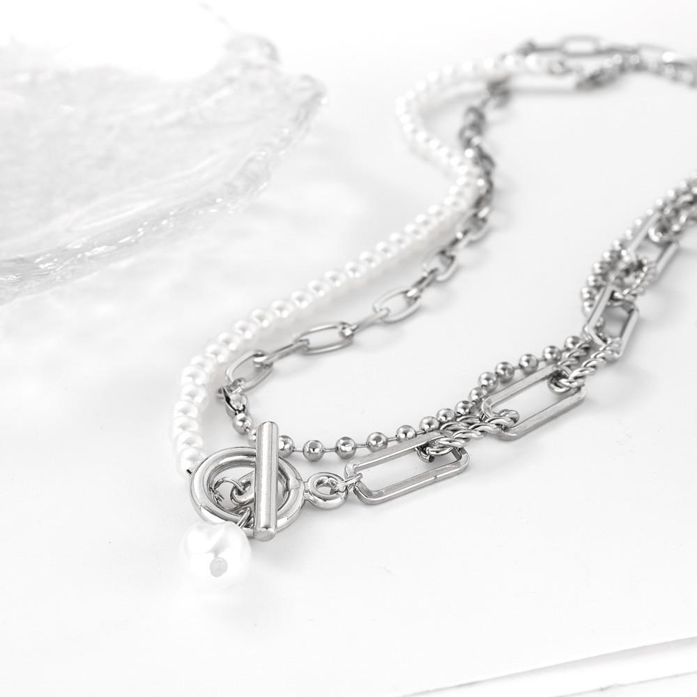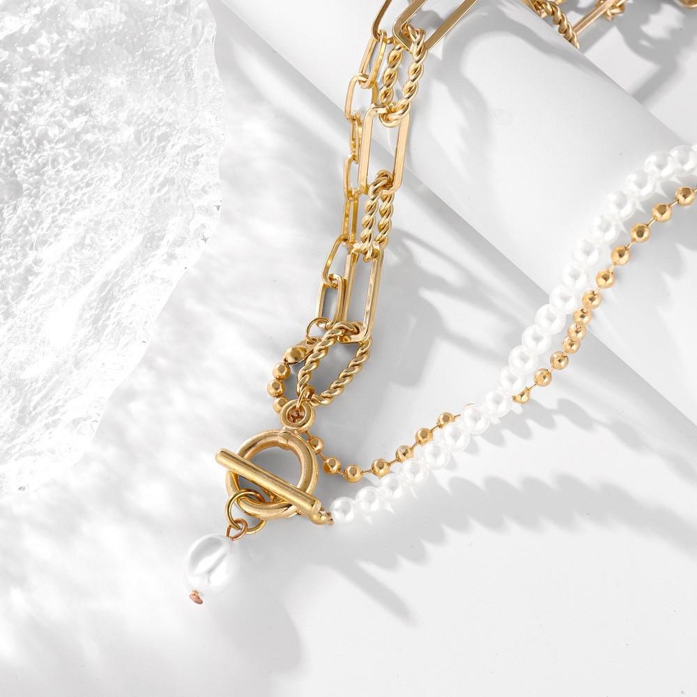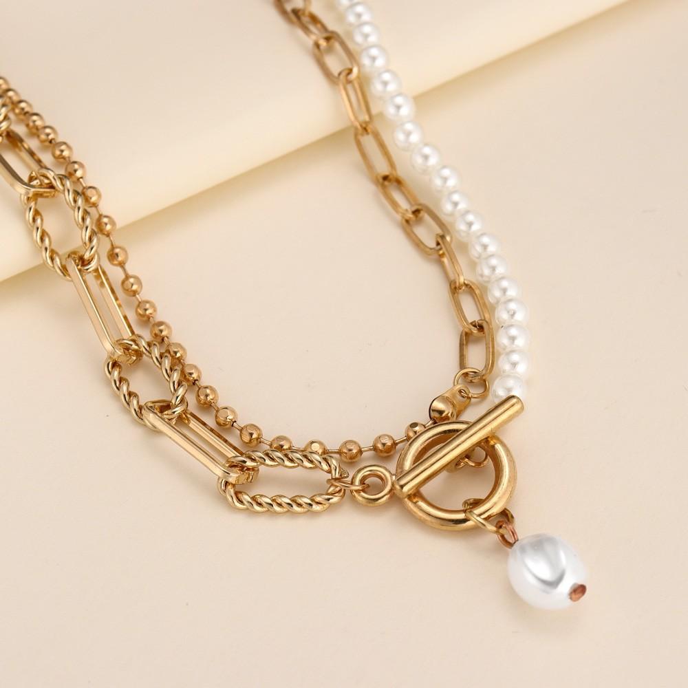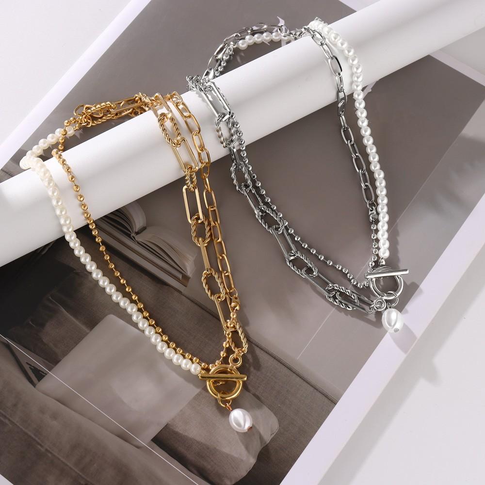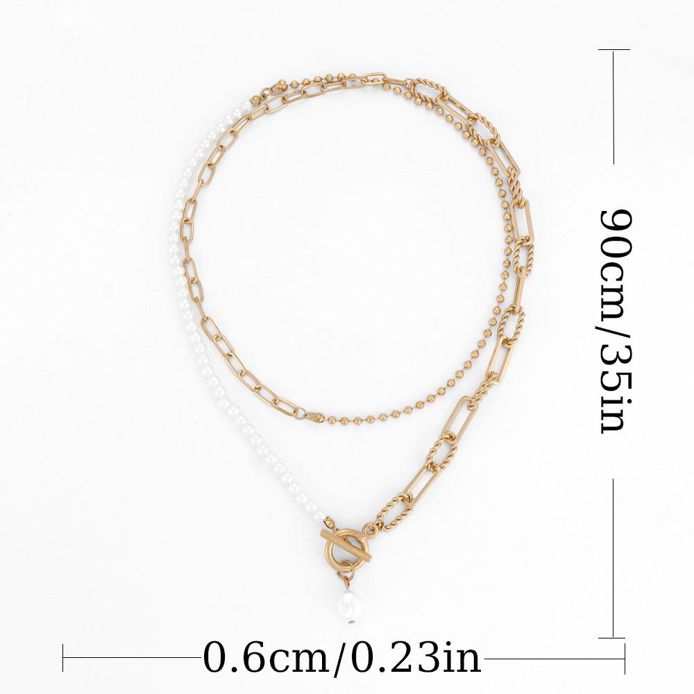 Gargantilla con cadena de metal, estilo retro, informal, con perlas de imitación y cuentas sencillas, estilo transfronterizo europeo y americano.