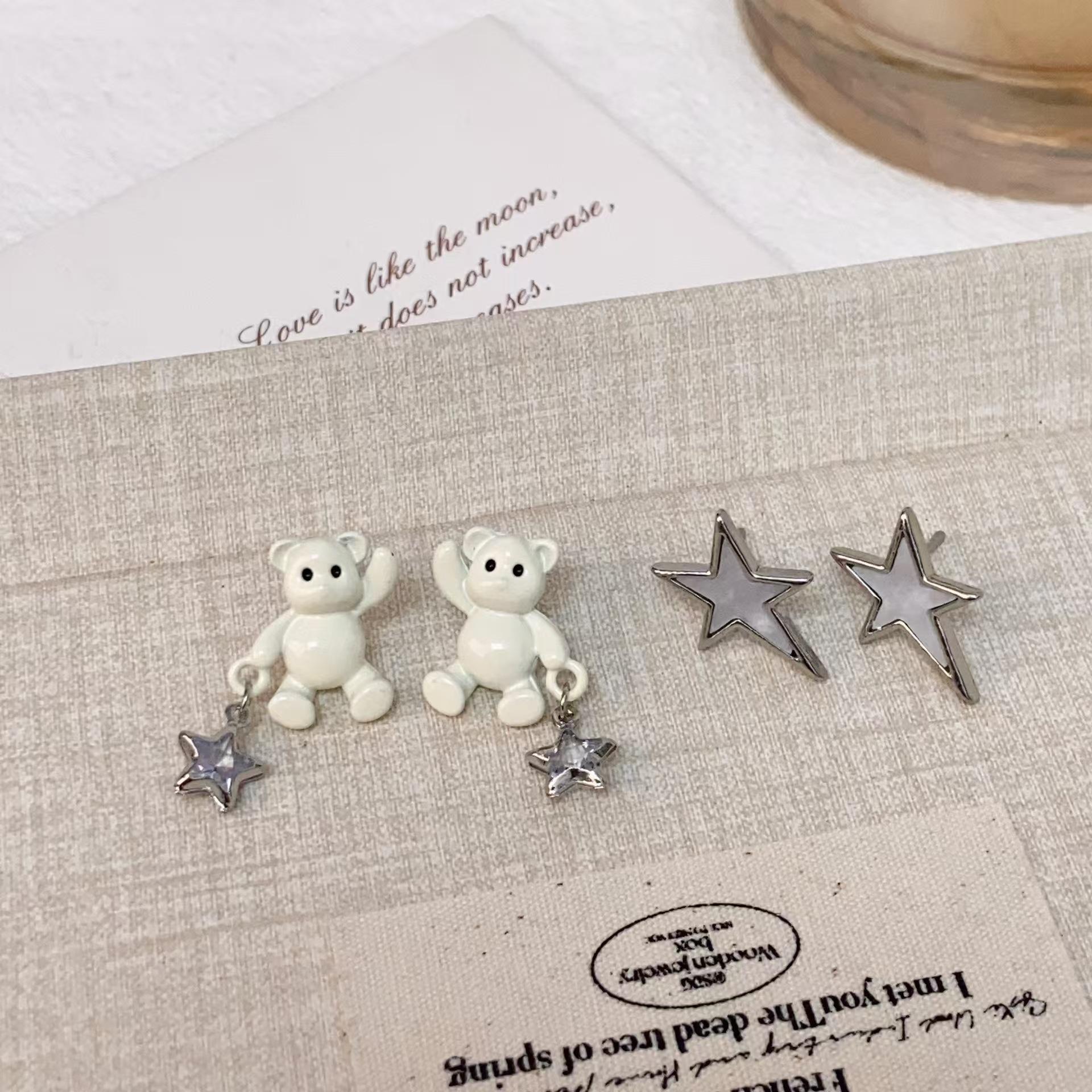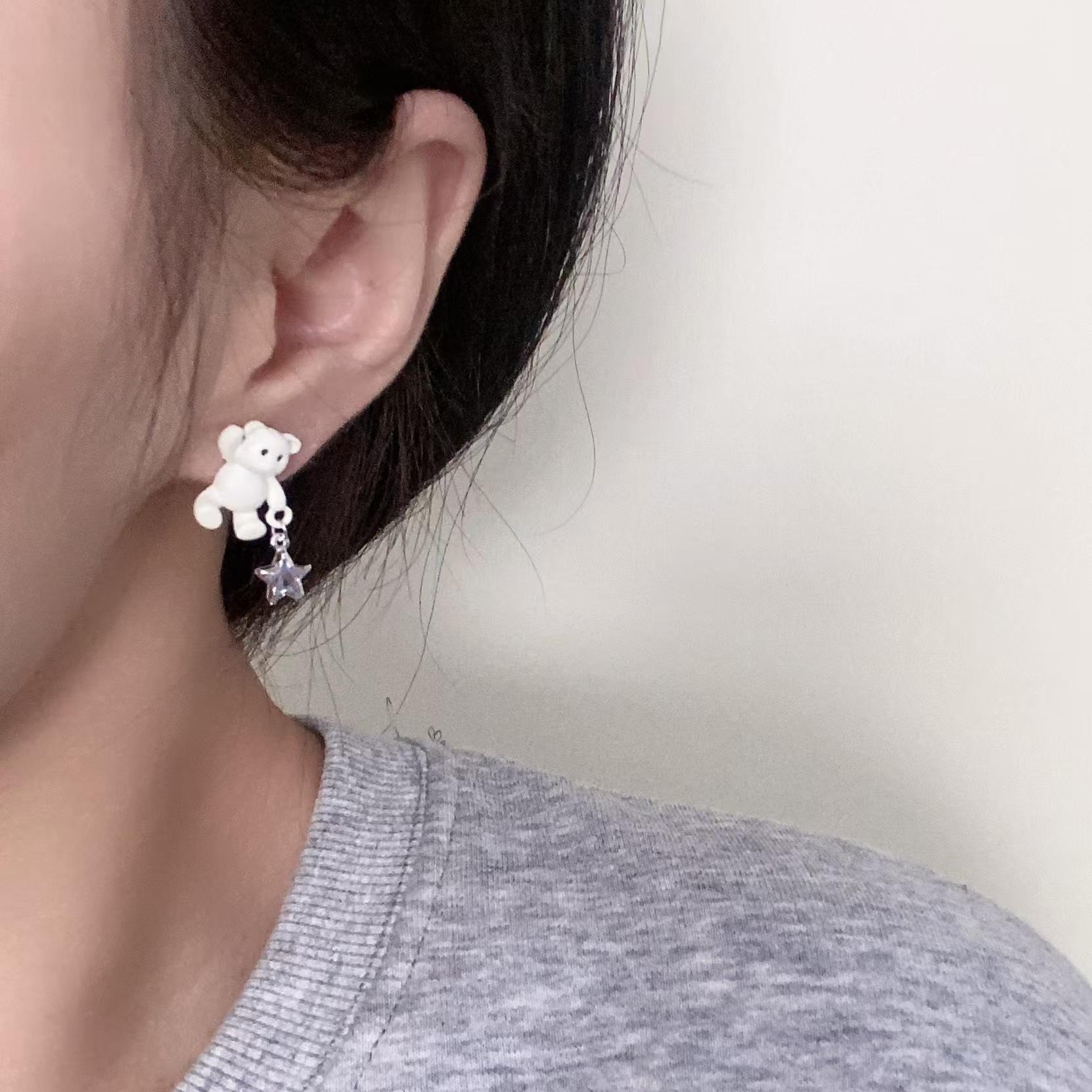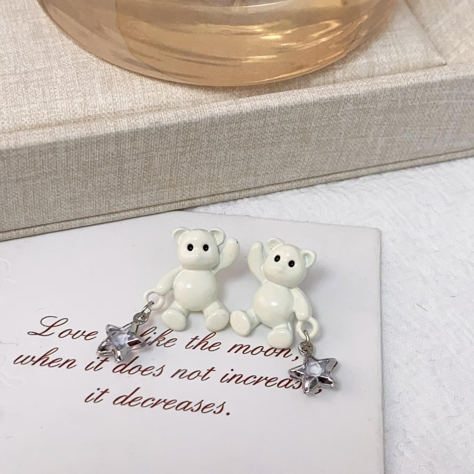 Pendientes colgantes de oso estrella de estilo dulce y genial para mujer, diseño de nicho, pendientes de dibujos animados, tendencia de moda, pendientes que combinan con todo.