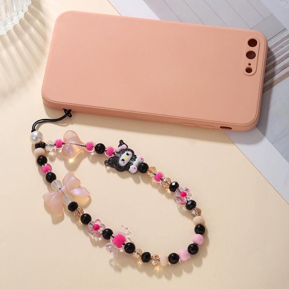 Pequeño colgante de cadena para teléfono móvil luminoso con forma de kulomi fresco y picante, con cuentas dulces y picantes, para cámara CCD, cordón para la muñeca, cadena colgante antipérdida