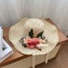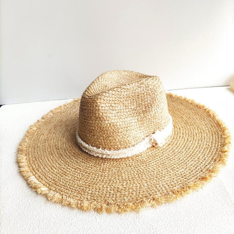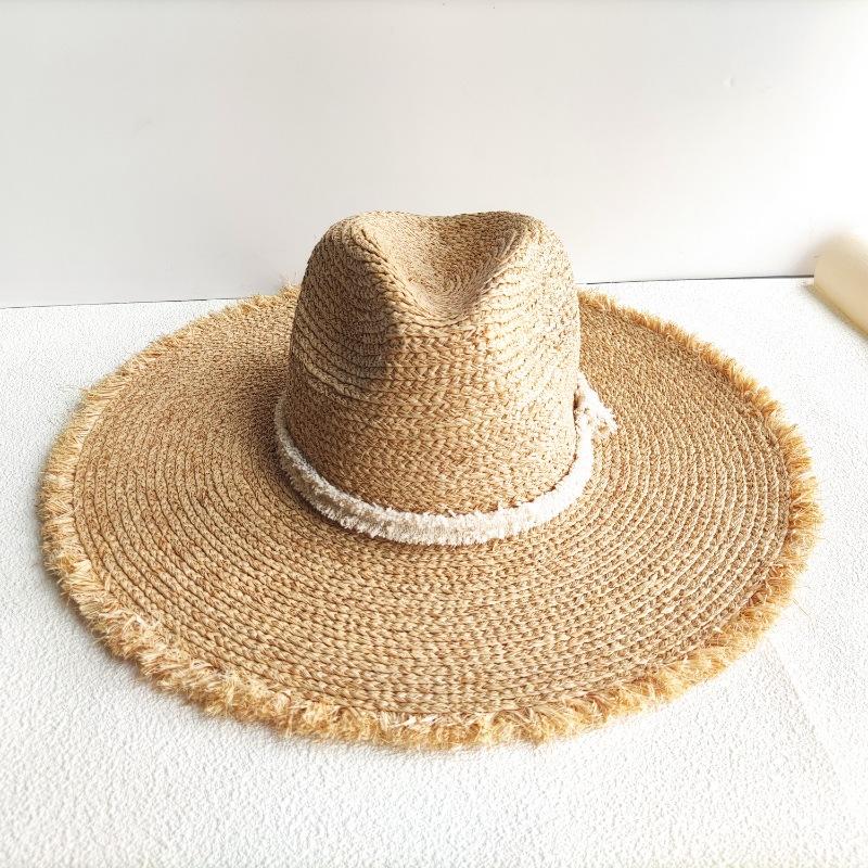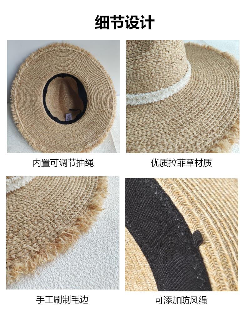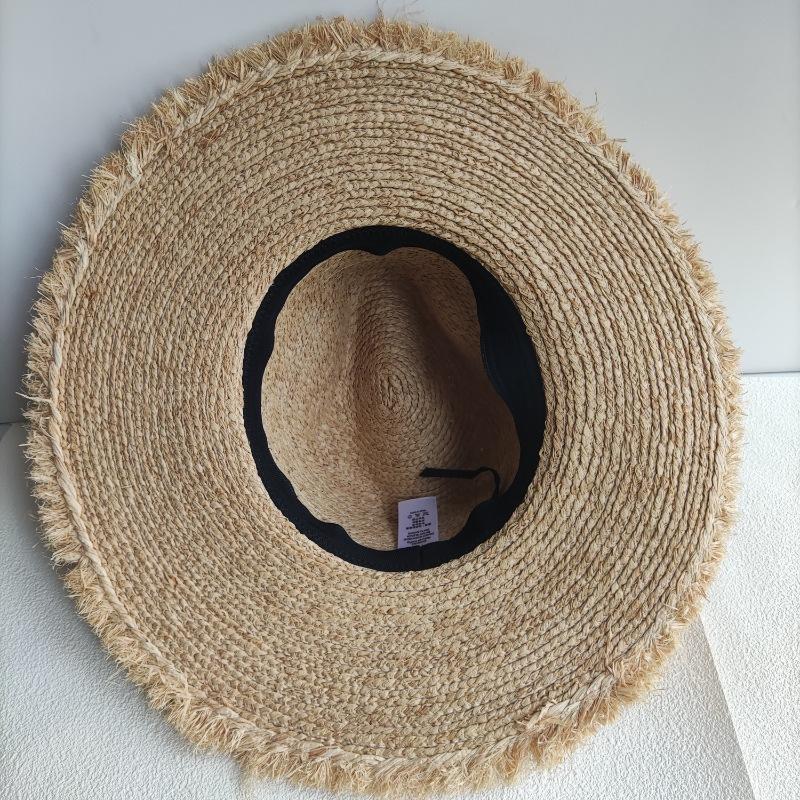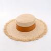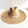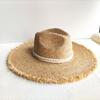 Sombrero de Paja de Rafia Natural de Alta Gama Estilo Europeo y Americano con Ala Ancha, Dulce Sombrero de Paja con Flecos, Sombrero de Paja de Rafia