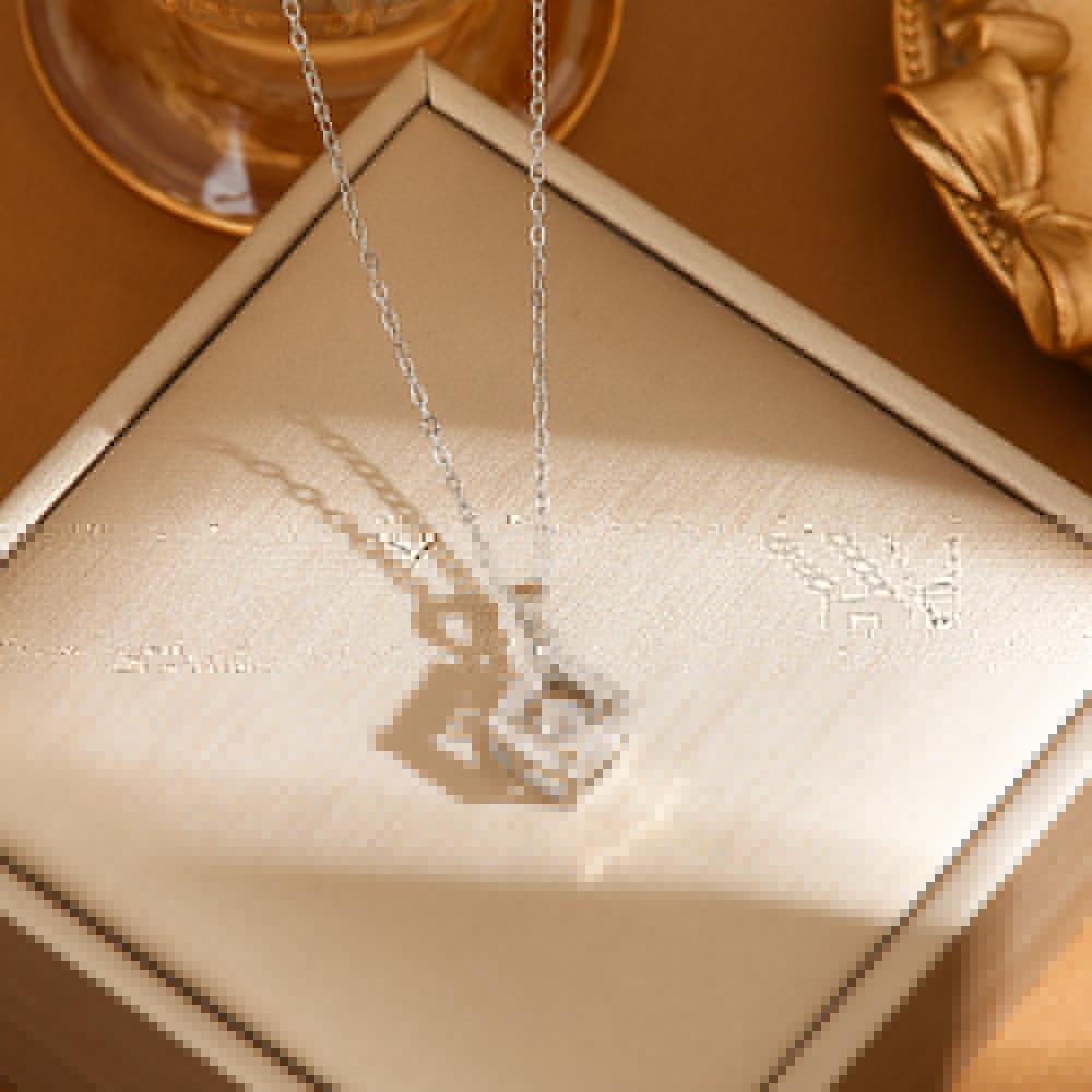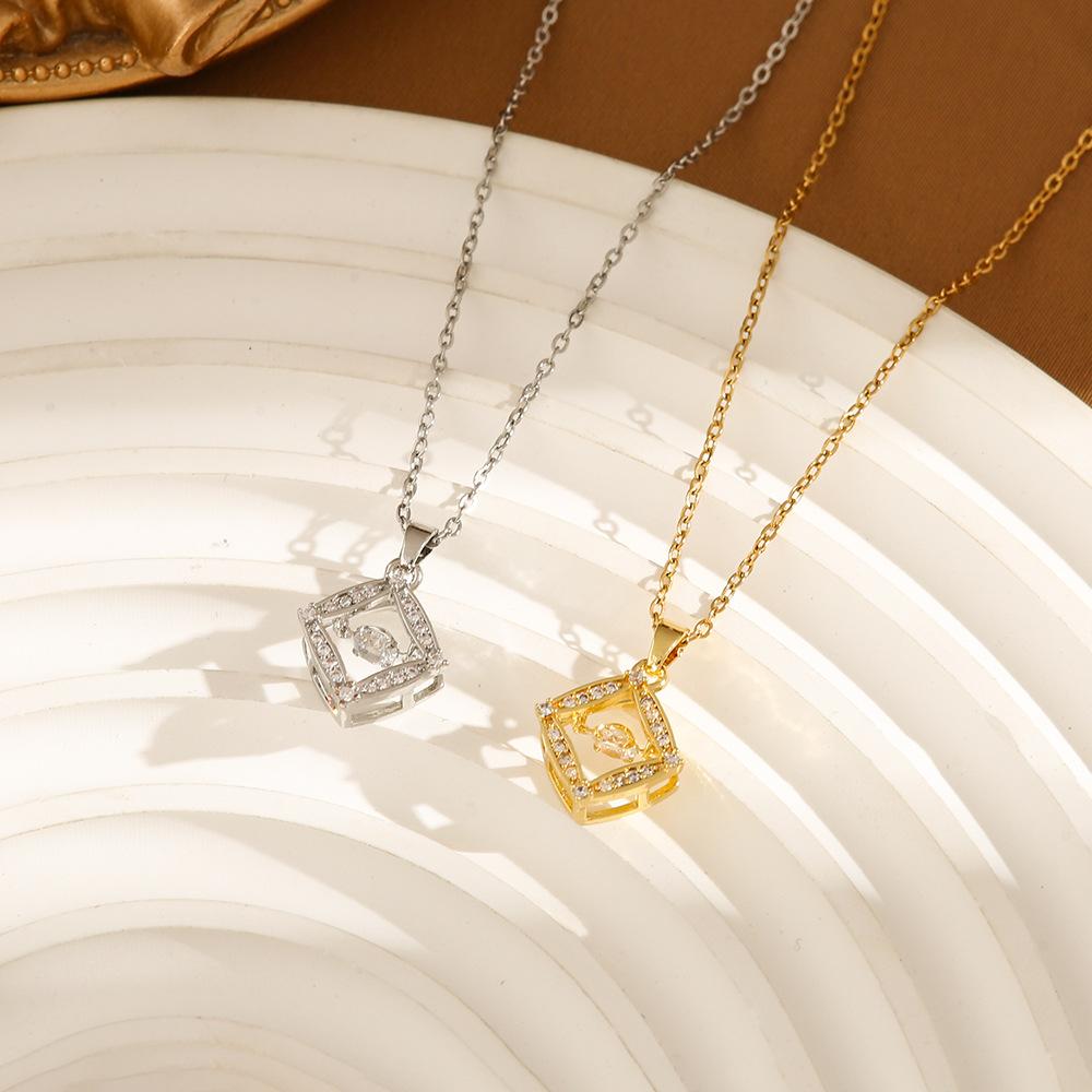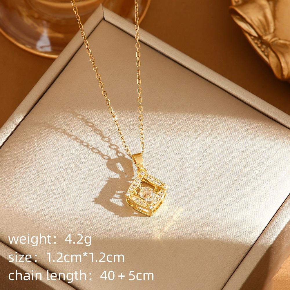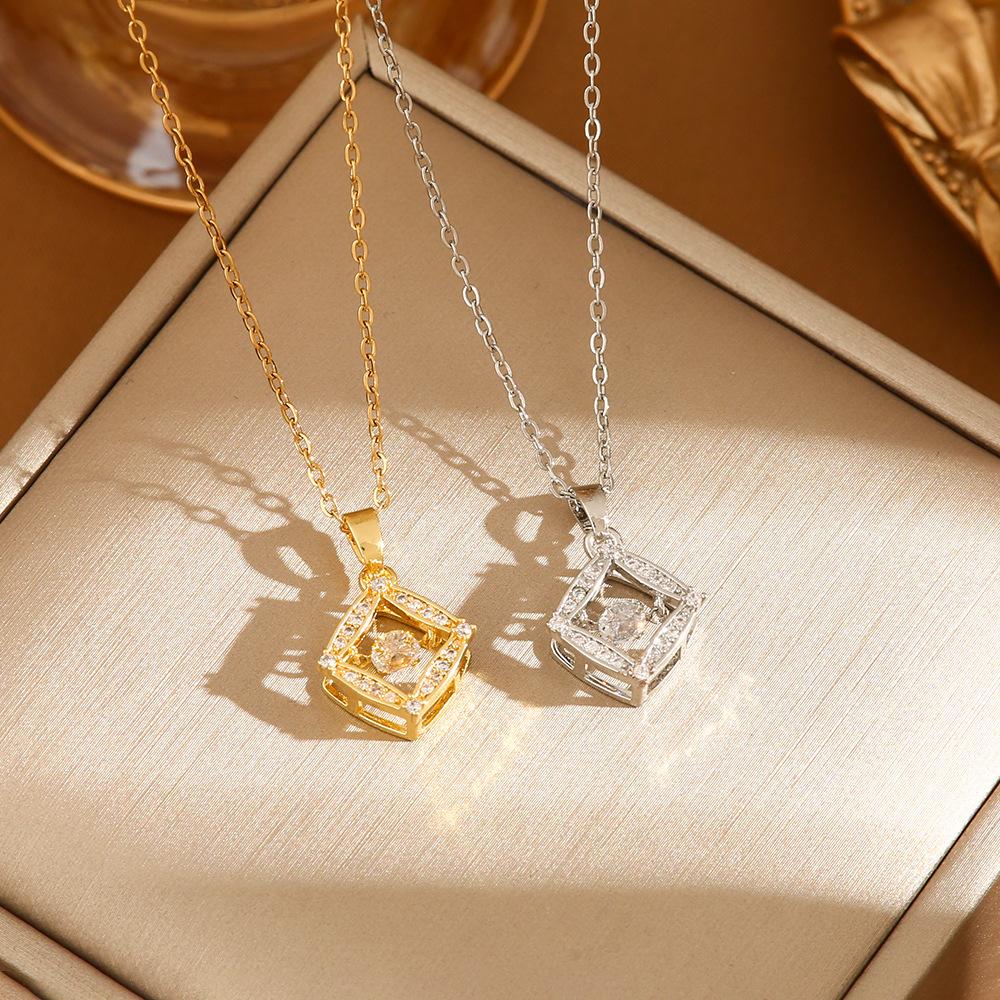 Collar de acero de titanio cuadrilátero inteligente de lujo con luz de diamante completo transfronterizo de Europa y Estados Unidos, cadena de clavícula Joker roja de red para mujer, fabricantes de titanio al por mayor