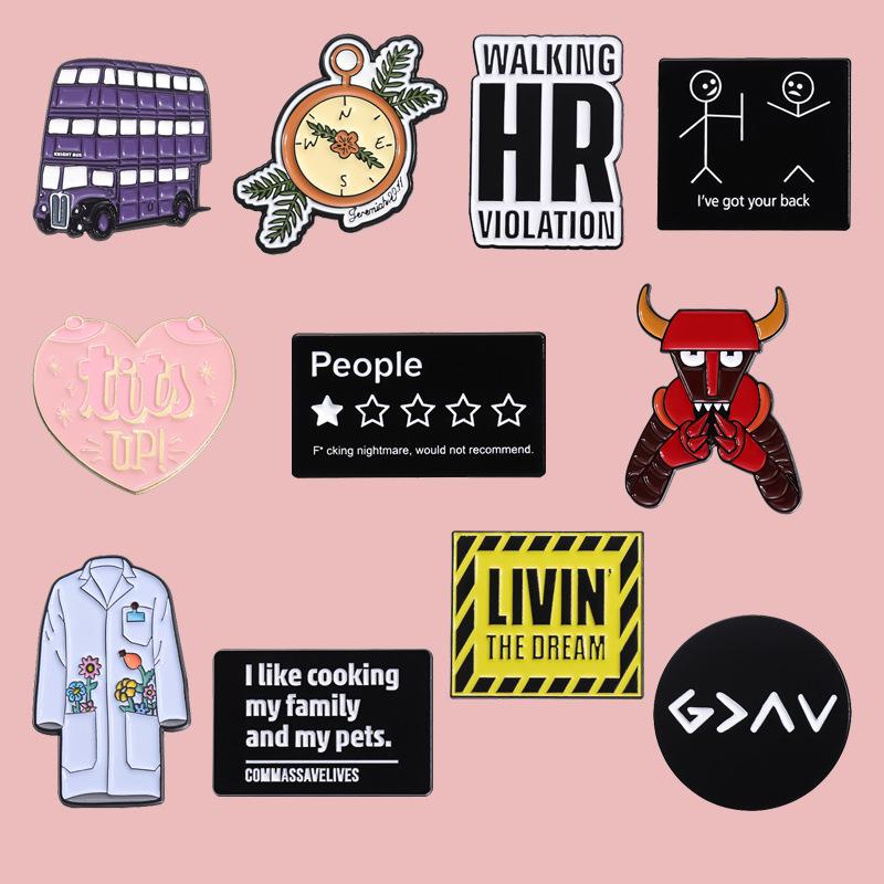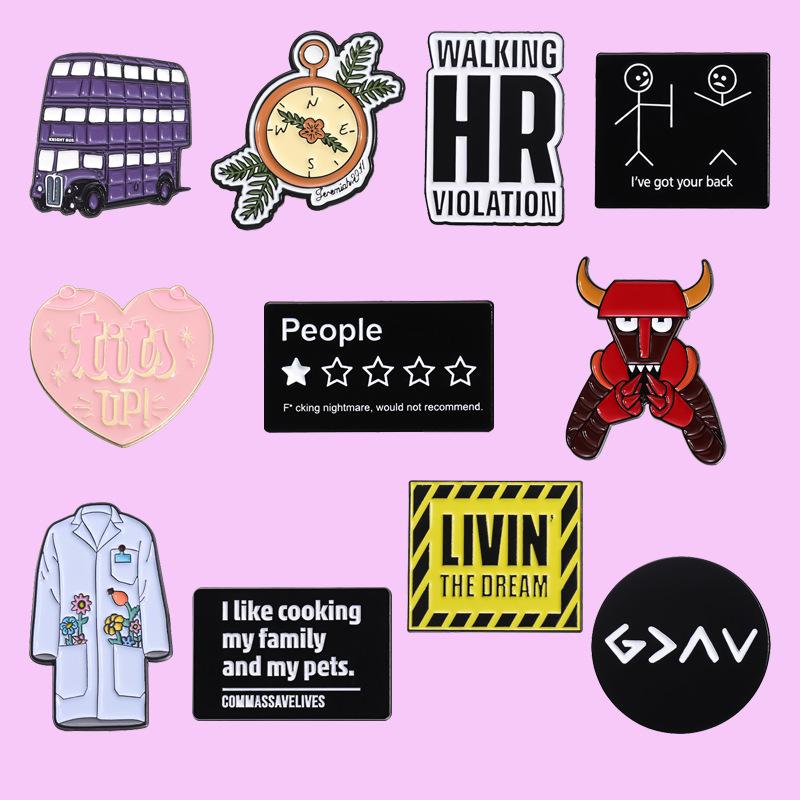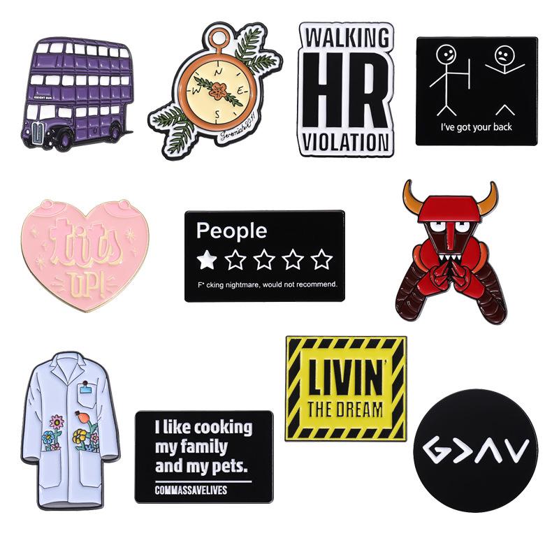 Broche con letras en inglés, creativo y novedoso, accesorio personalizado, estilo brújula, insignia, transfronterizo