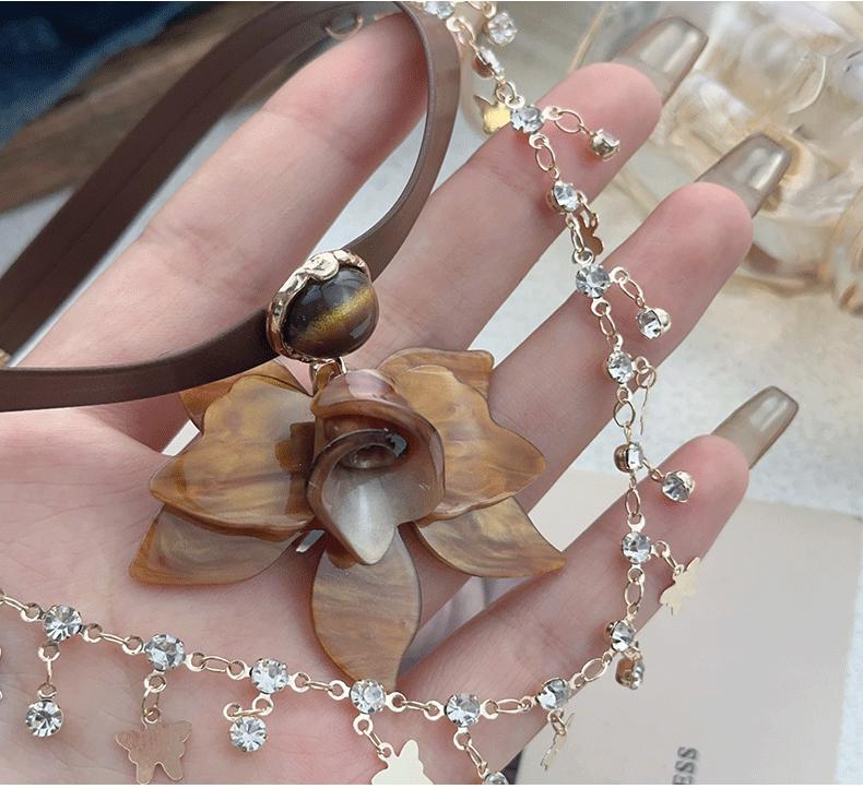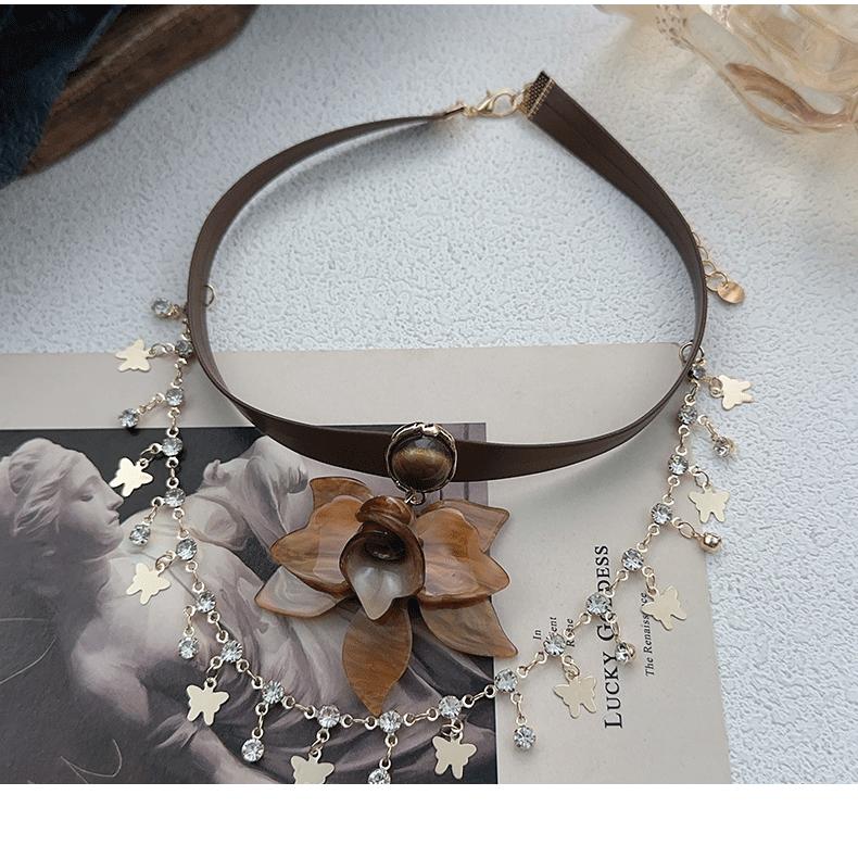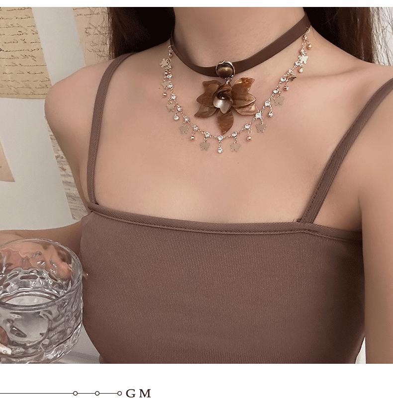 Collar vintage de doble capa con diseño de mariposa y flores, gargantilla para mujer, estilo nicho, dulce y genial, estilo Spice Girl, cadena de clavícula para otoño e invierno, combina con todo.