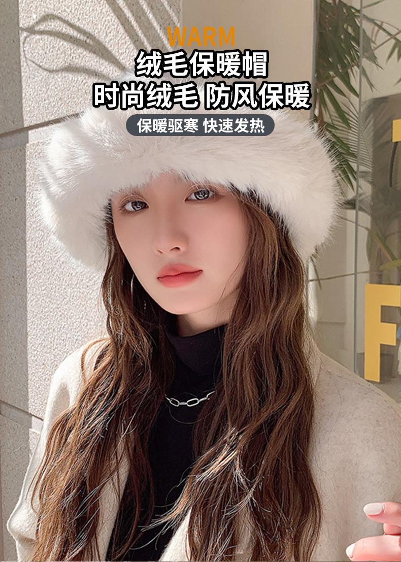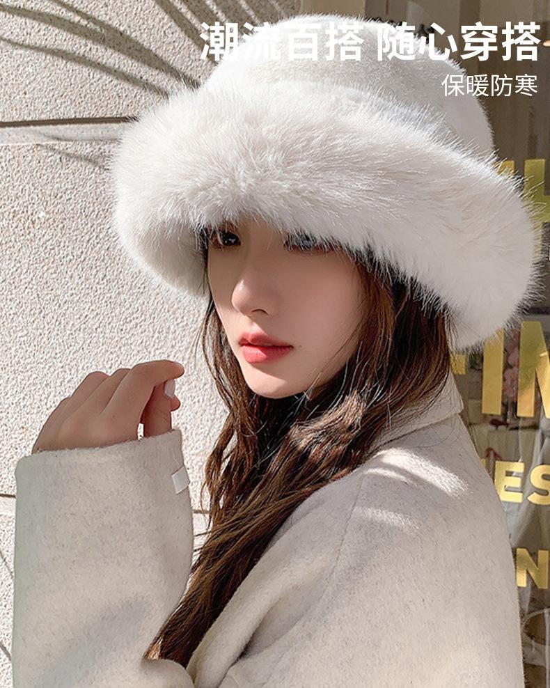 Nuevo sombrero de pescador de invierno para mujer, sombrero de cubo de felpa de imitación visón, sombrero de barril con vuelta hacia arriba, para ciclismo, a prueba de frío, cálido, con protección para las orejas, sombrero mongol