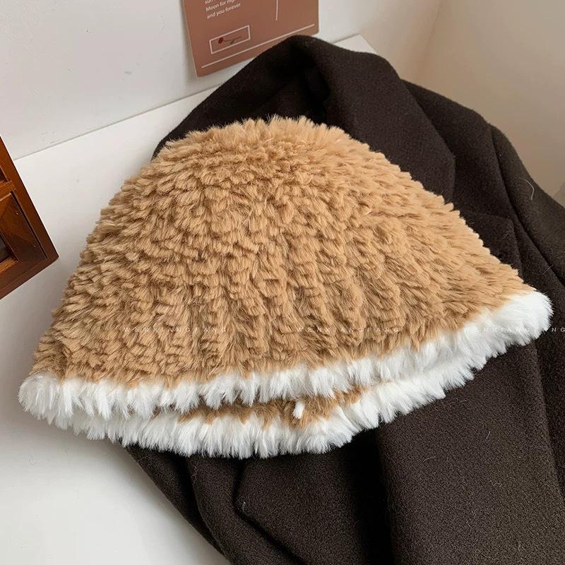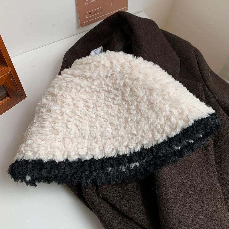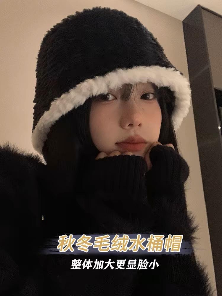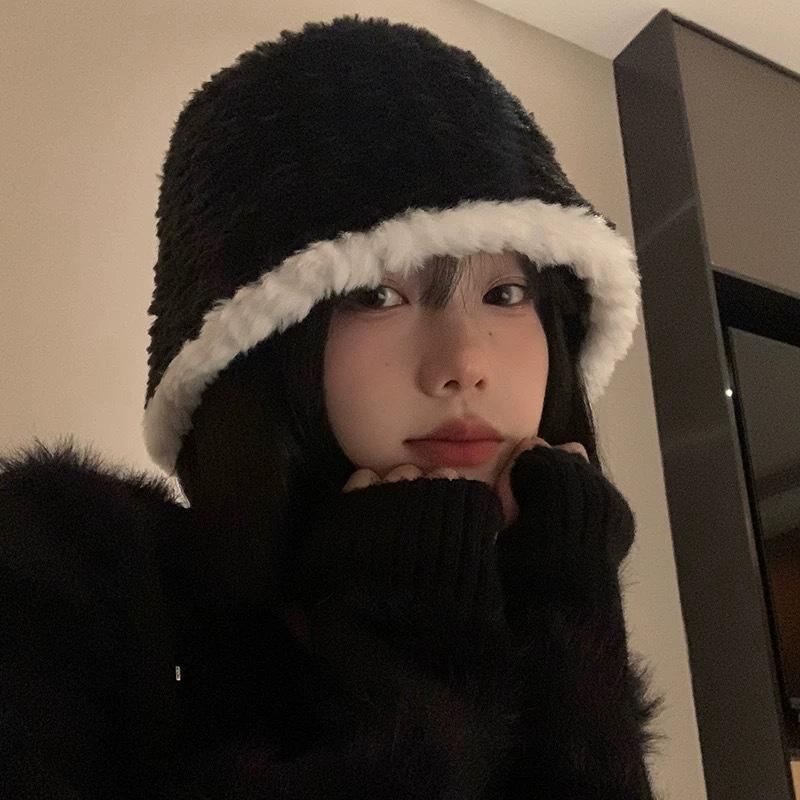 Gorro de lana gruesa y cálida para otoño e invierno, moderno, peludo, versión grande, de punto combinable, gorro de pescador de felpa para mujer