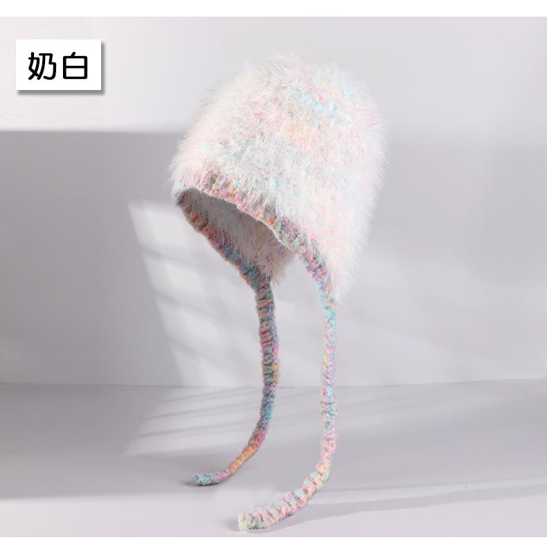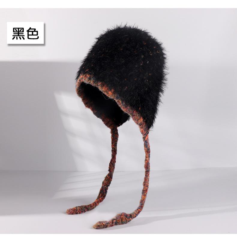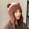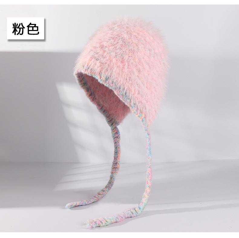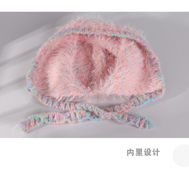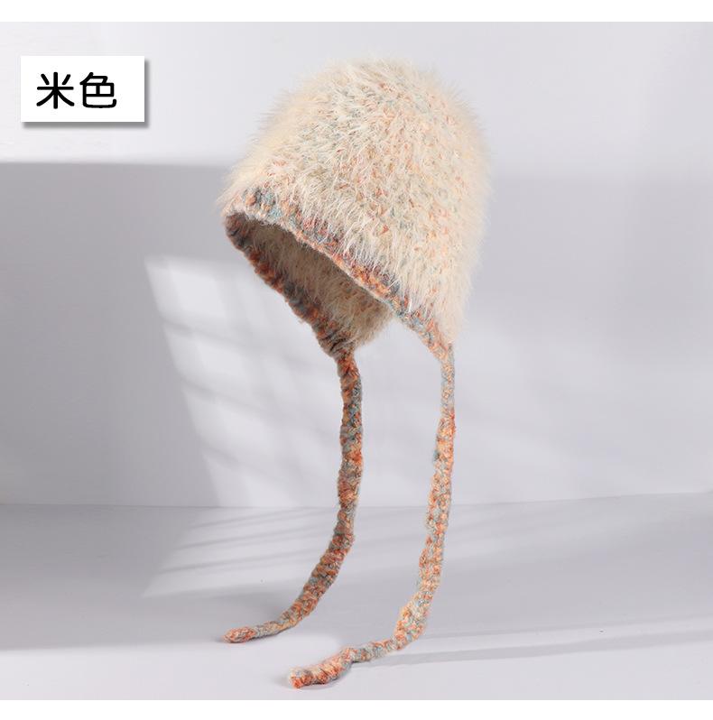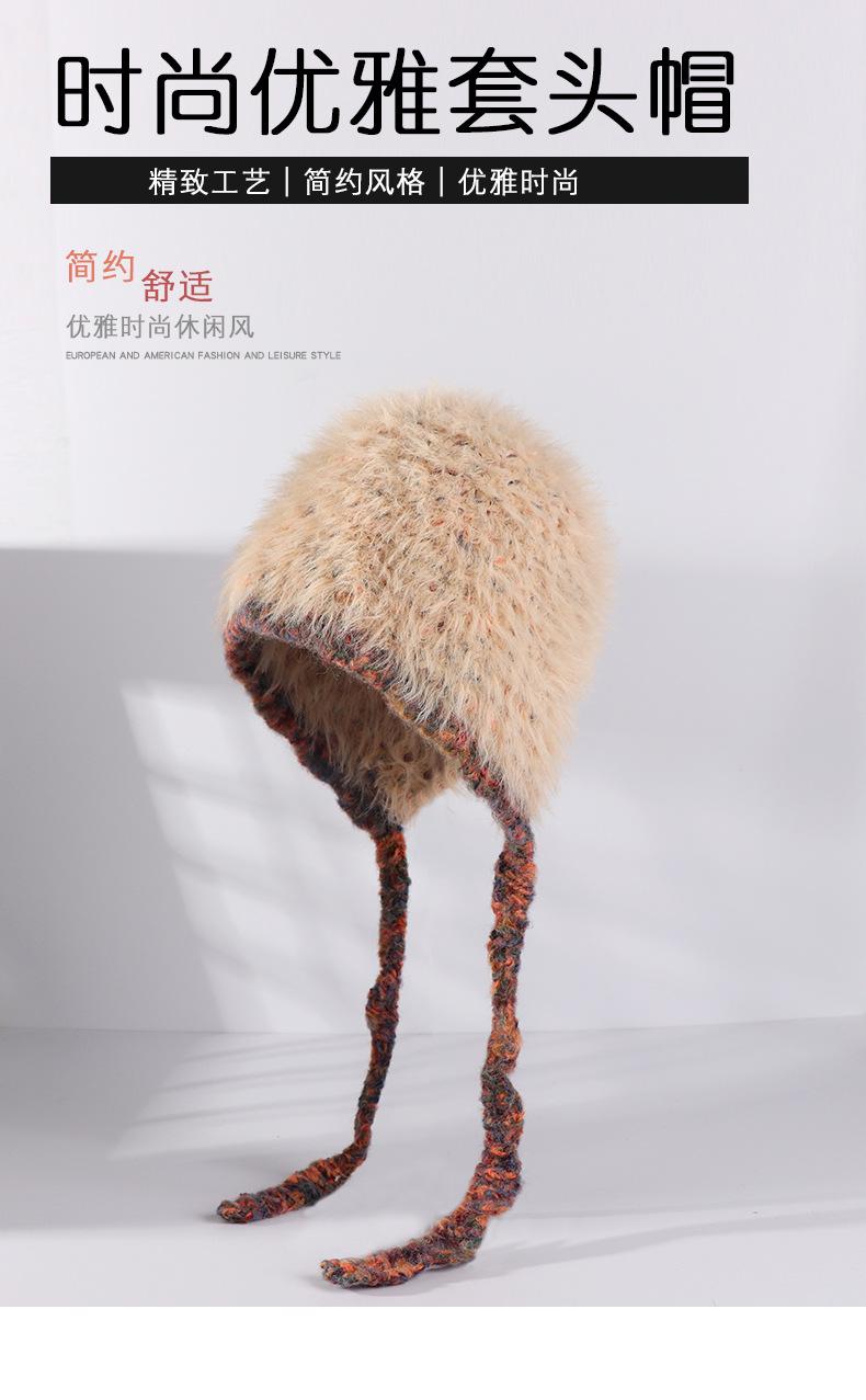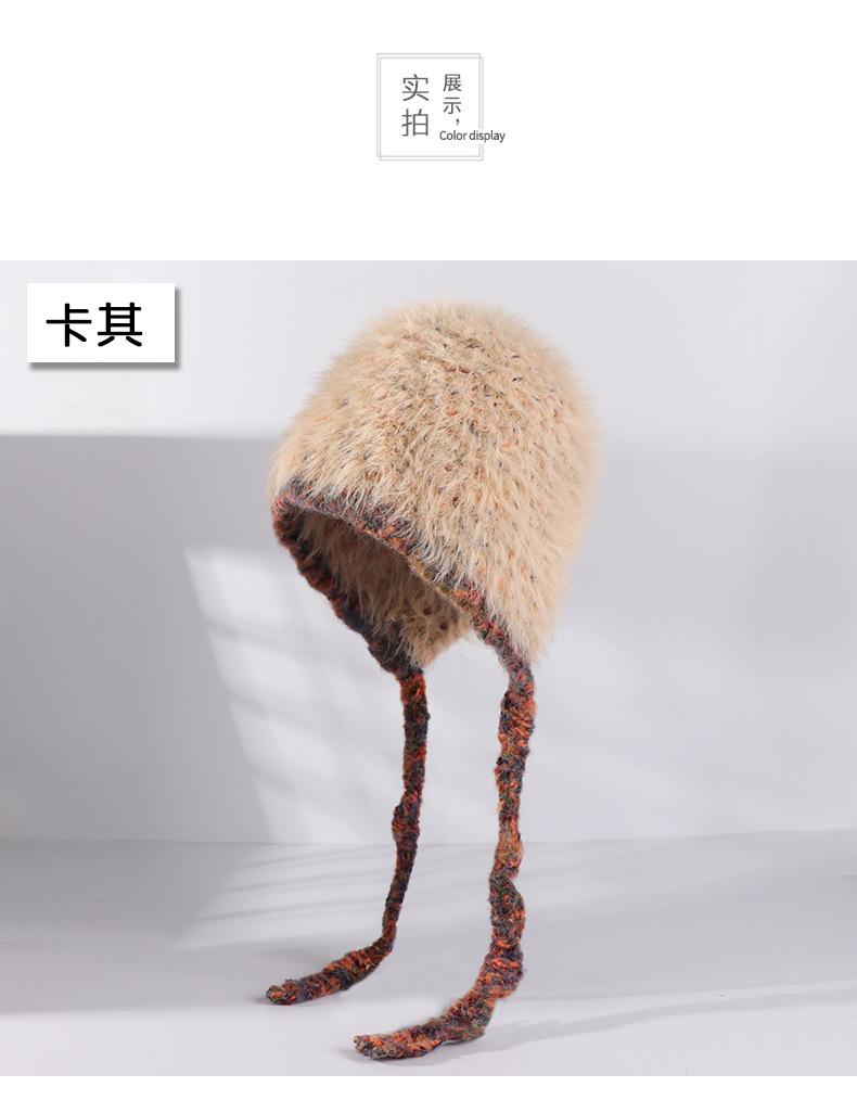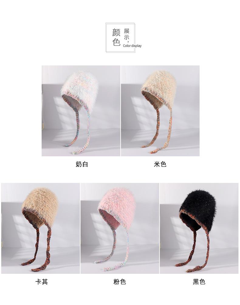 Invierno coreano nuevo cálido cara pequeño felpa tejido contraste sombrero protección para las orejas lindo gorro de lana al por mayor