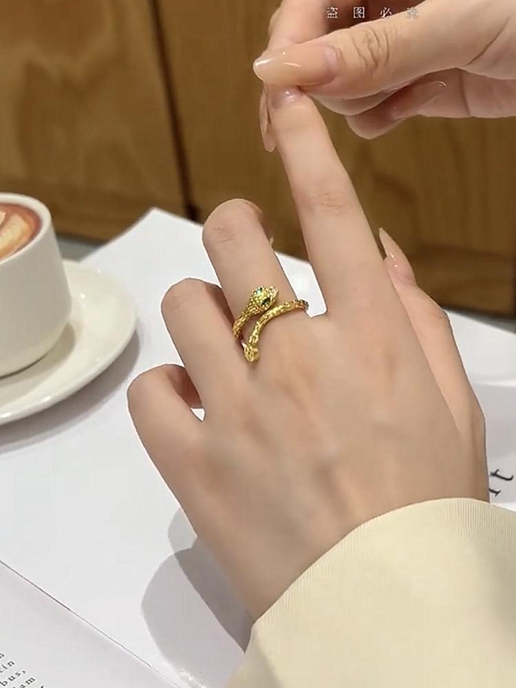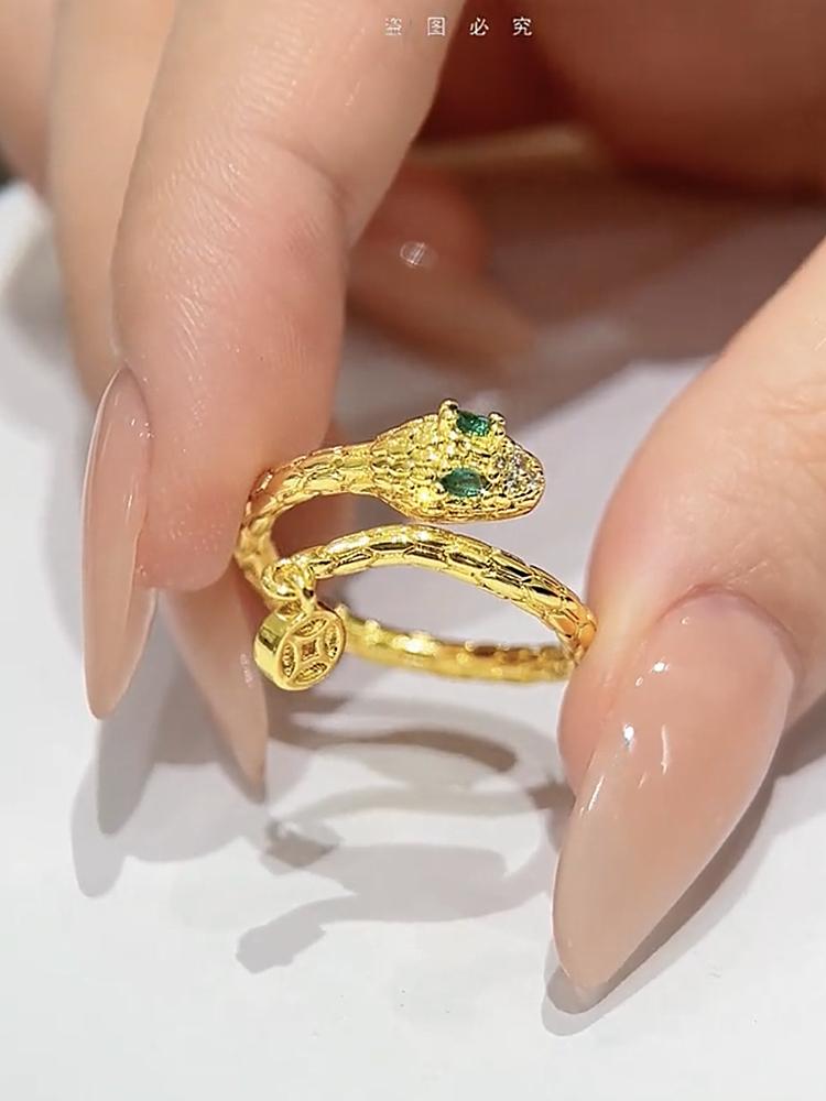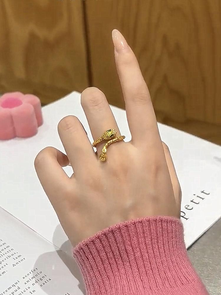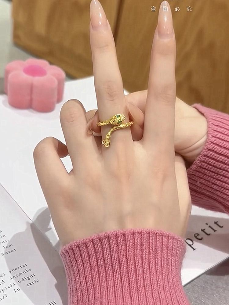Anillo Abierto de Cobre con Forma de Serpiente de Moda para Mujer, Lujo Ligero de Alta Gama, Sensación de Transferencia de Buena Suerte Este Año de Vida Serpiente del Zodíaco Anillo de Dedo