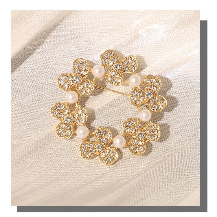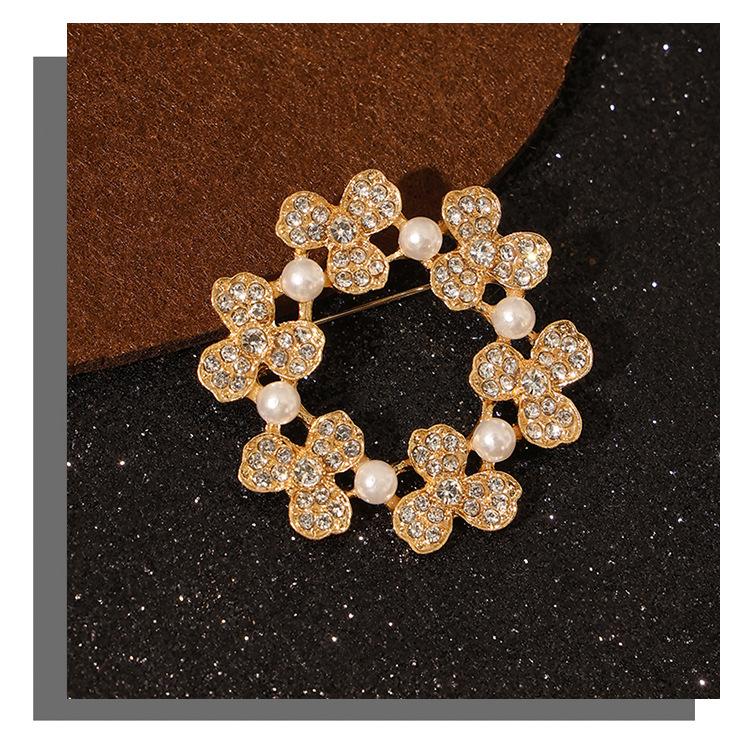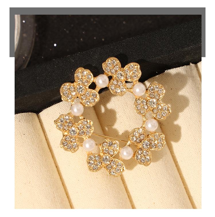 Elegante broche de perlas en forma de corona, ramillete femenino de alta gama, nicho con sentido de alta gama, ropa versátil con alfiler, joyería antiluz