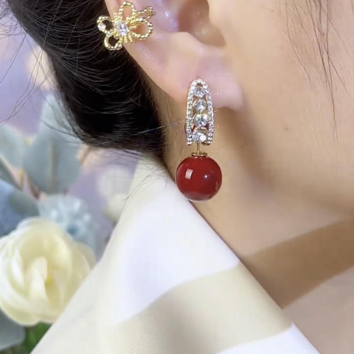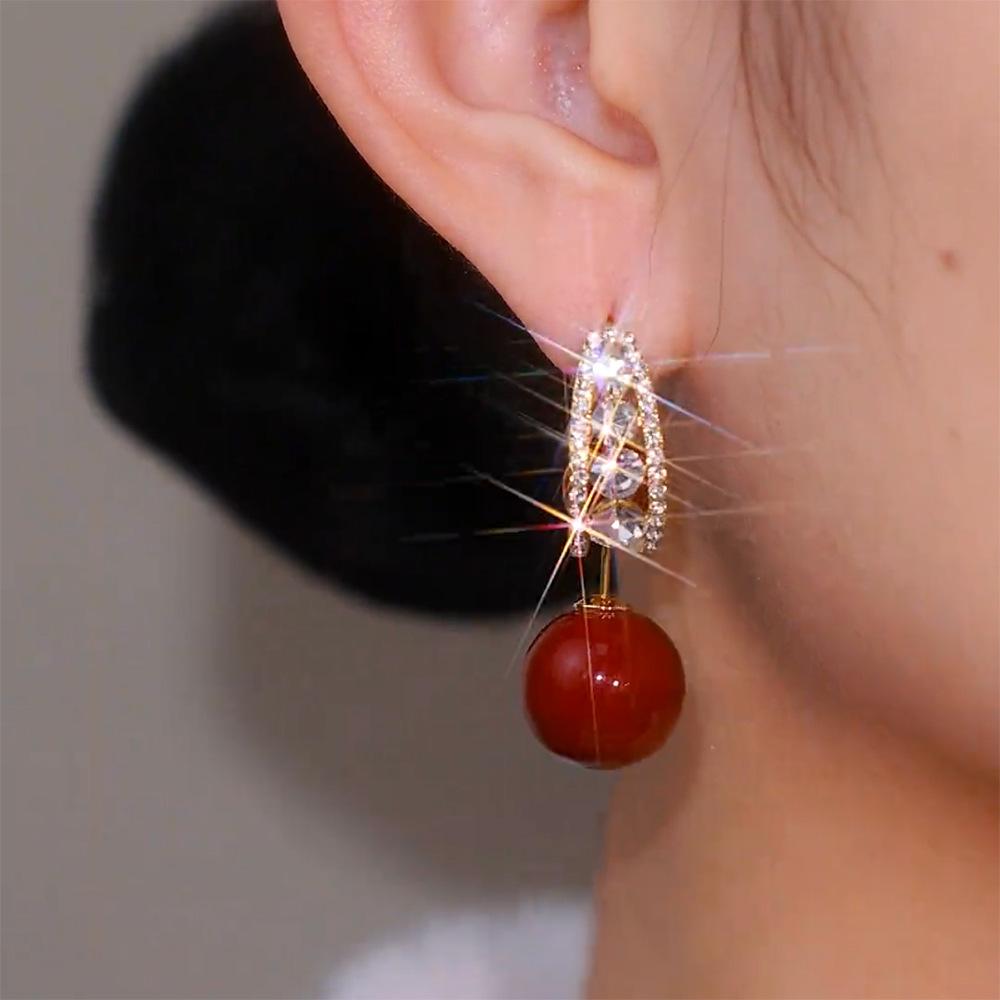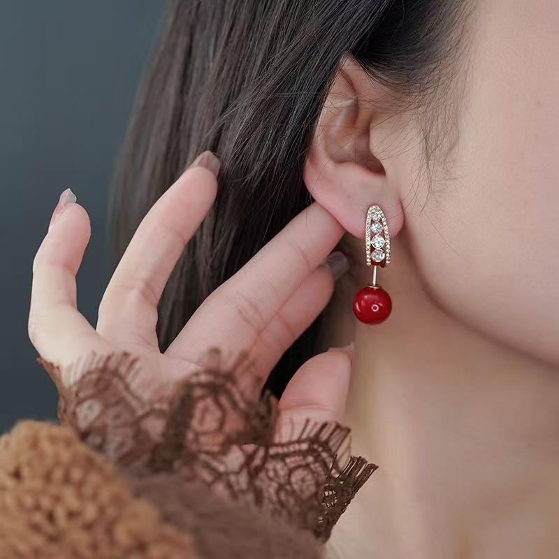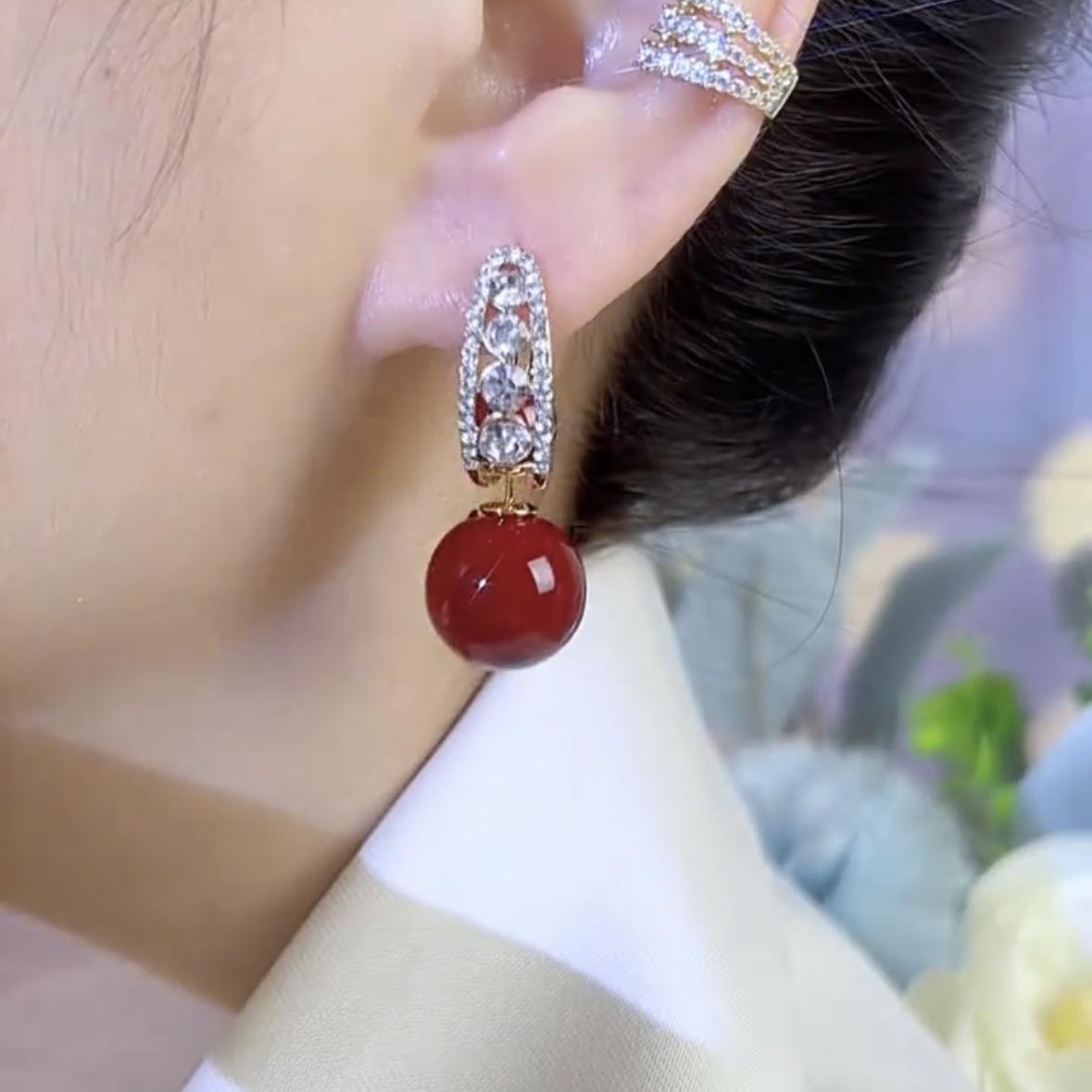 Pendientes de aguja de plata S925 rojos, ligeros, lujosos y de alta gama, con un estilo, dos nuevas explosiones, joyas personalizadas que combinan con todo.
