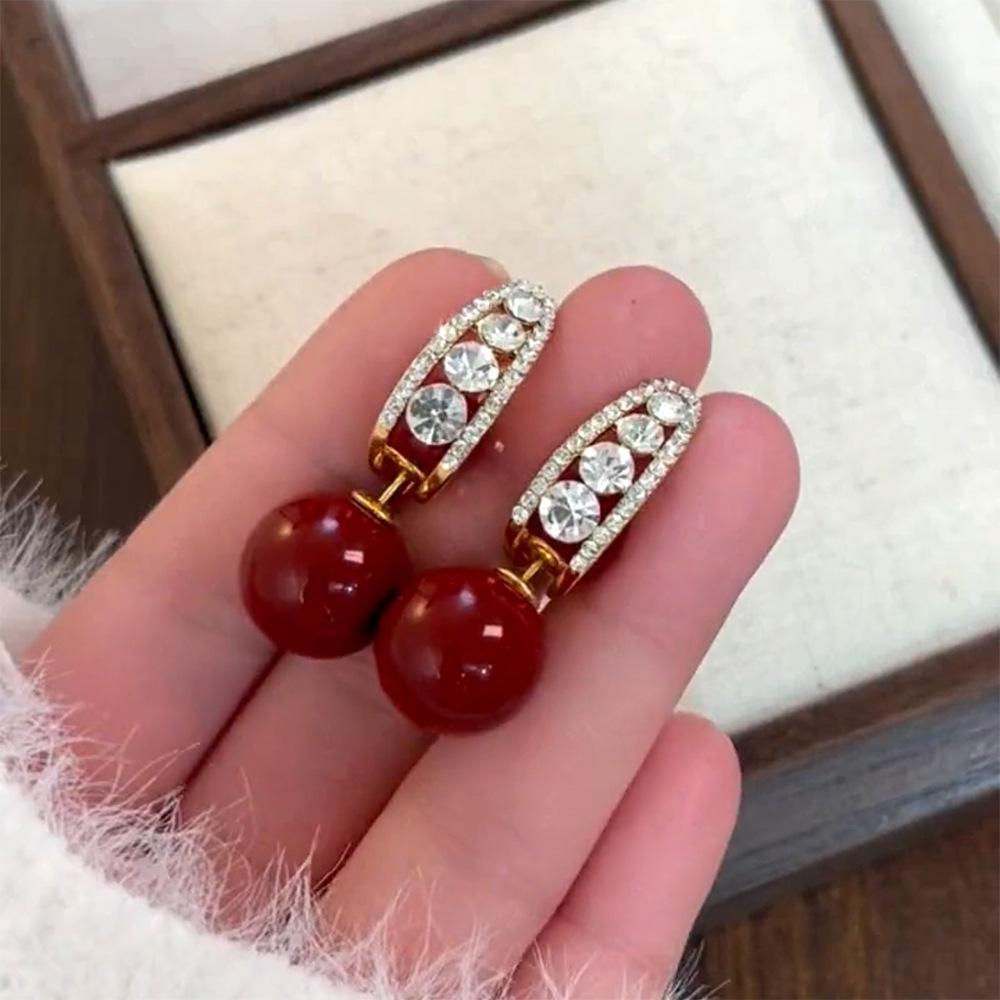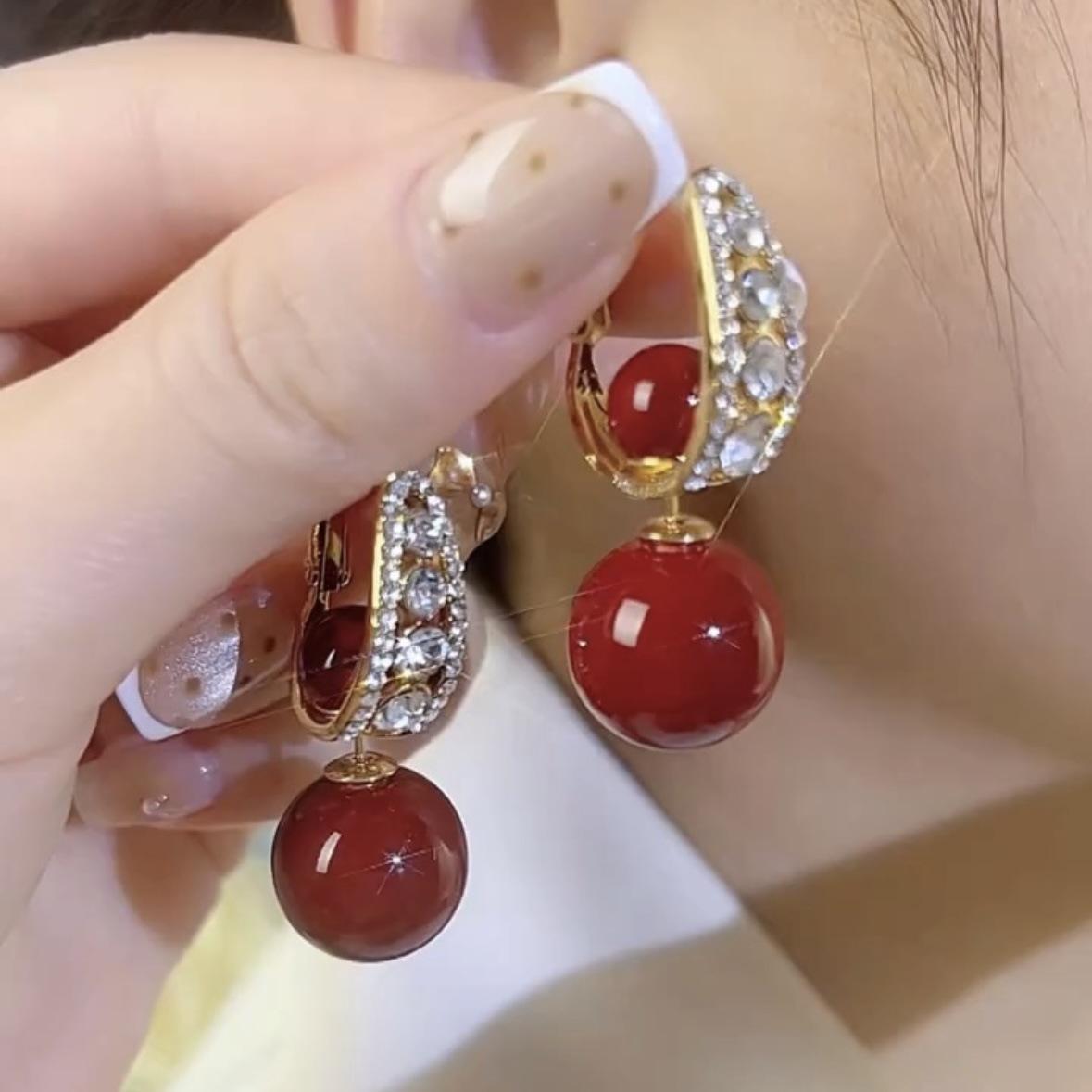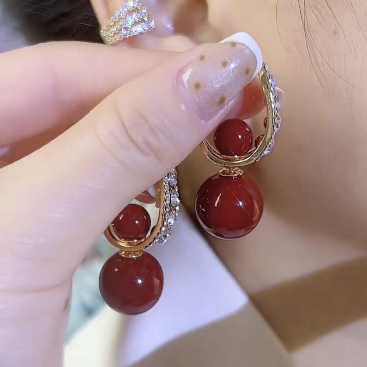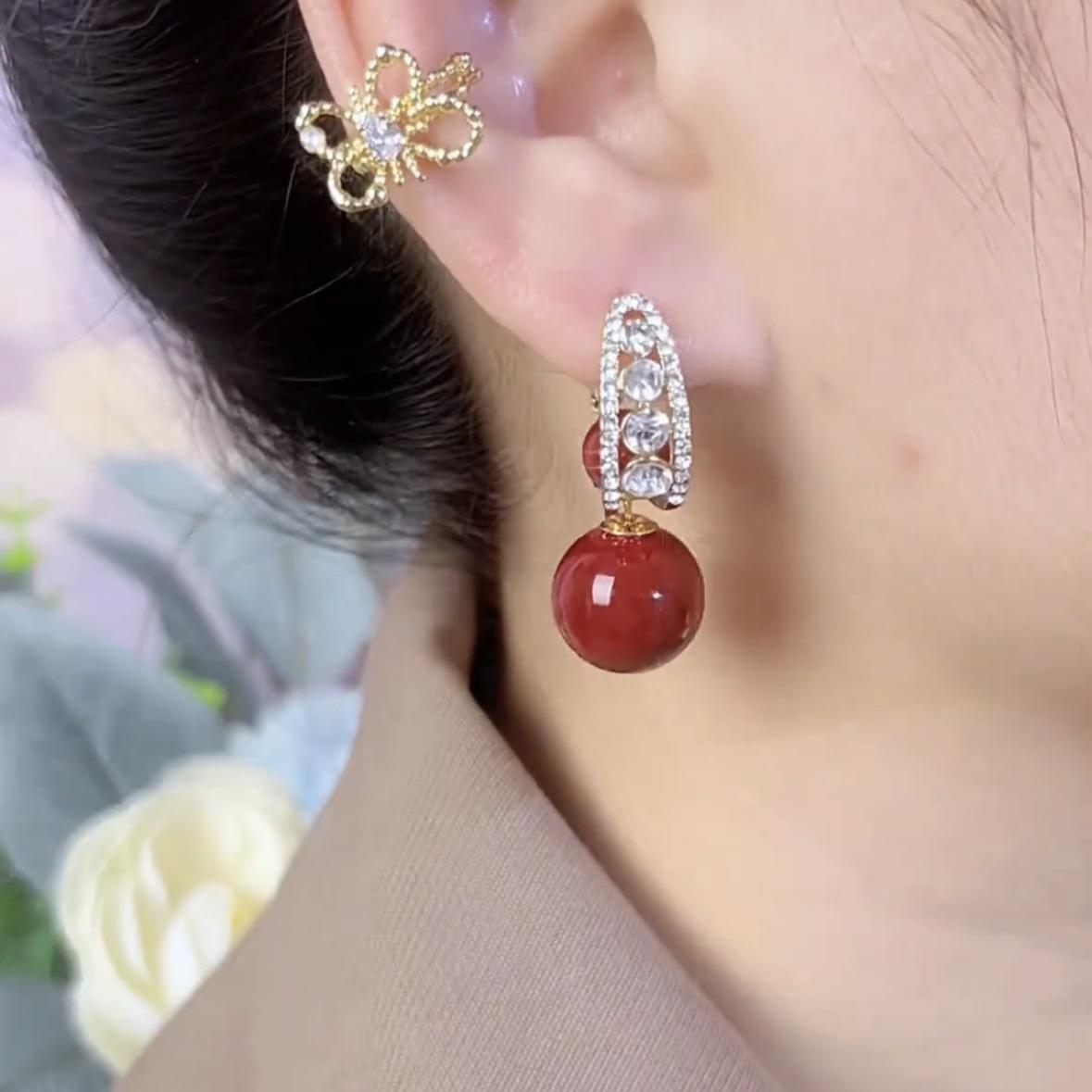 Pendientes de aguja de plata S925 rojos, ligeros, lujosos y de alta gama, con un estilo, dos nuevas explosiones, joyas personalizadas que combinan con todo.