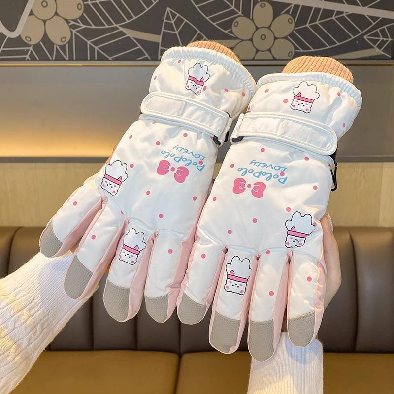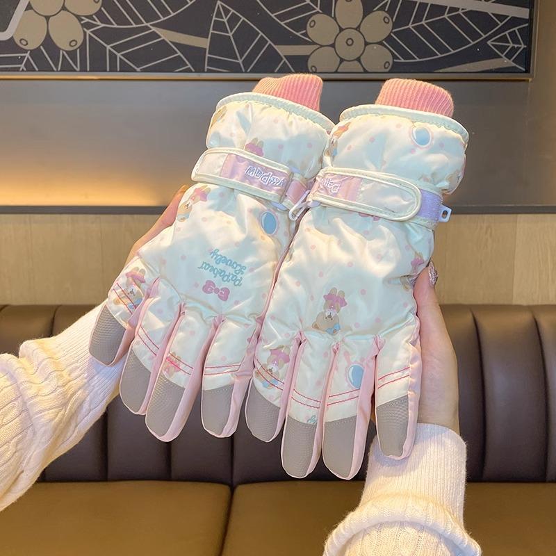 Guantes de Ciclismo de Oso Lindo Padre-Hijo Invierno Niños Cálidos A Prueba de Frío con Forro Polar Engrosados Pantalla Táctil Esquí Antideslizantes