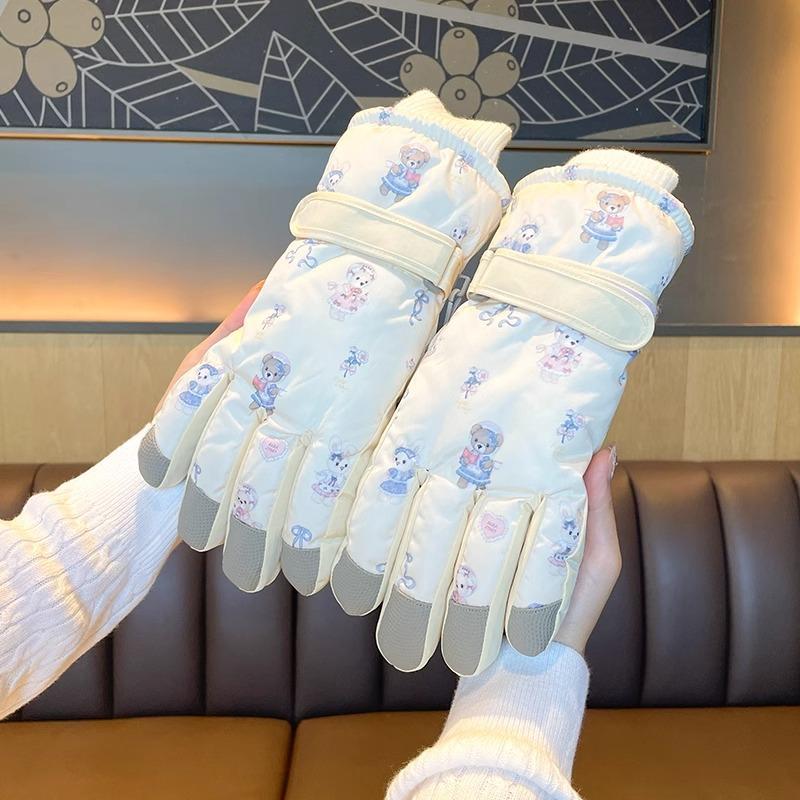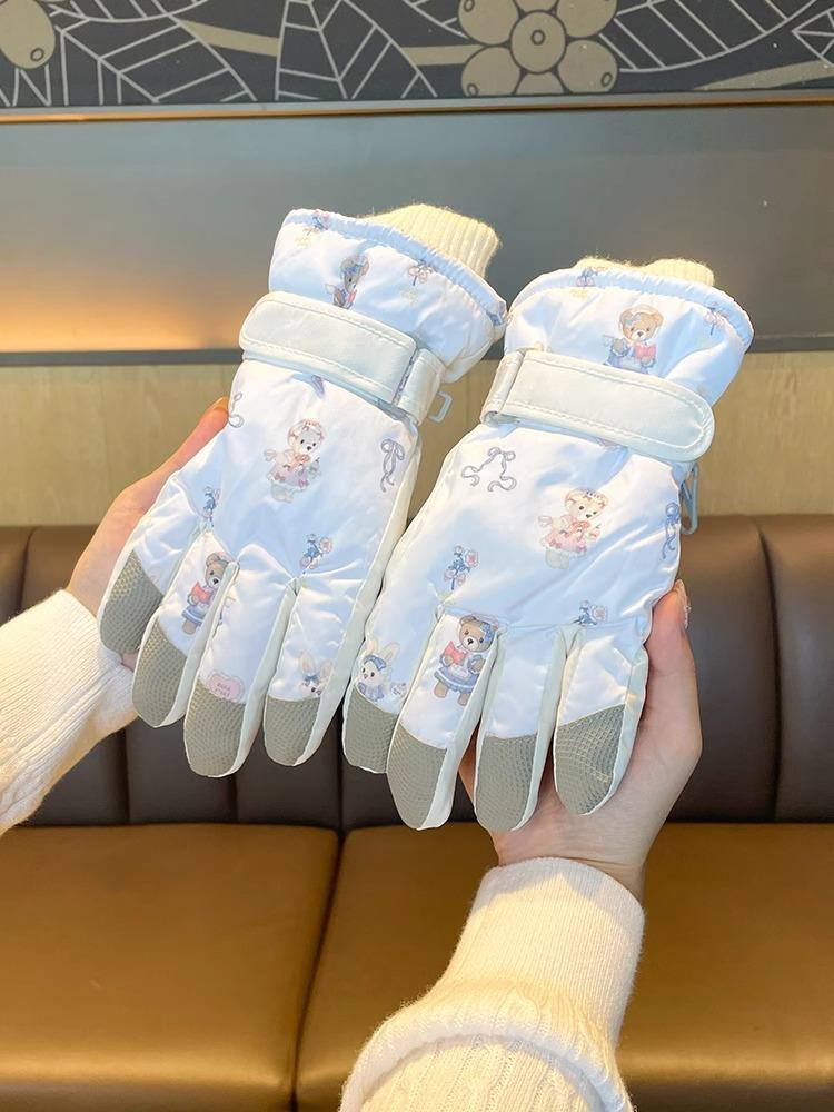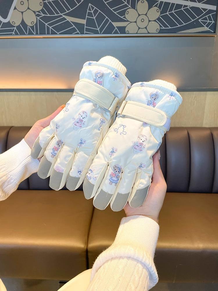 Off-white bear children's gloves [velvet and thickened] recommended for 6-12 years old