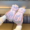 Pink and purple bear children's gloves [velvet and thickened] recommended for 6-12 years old