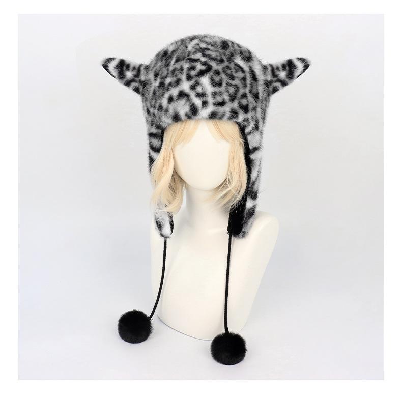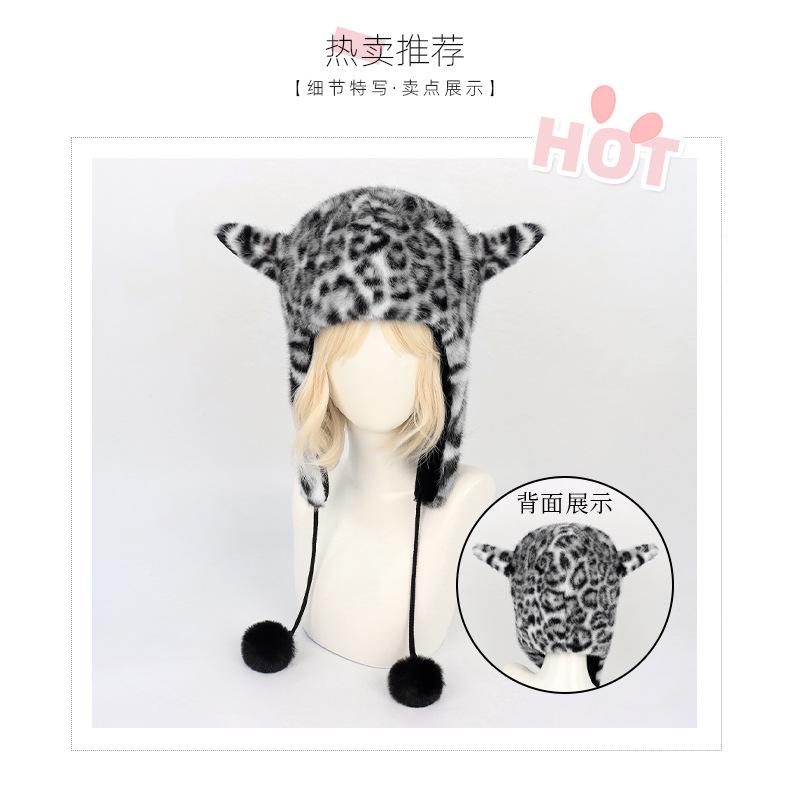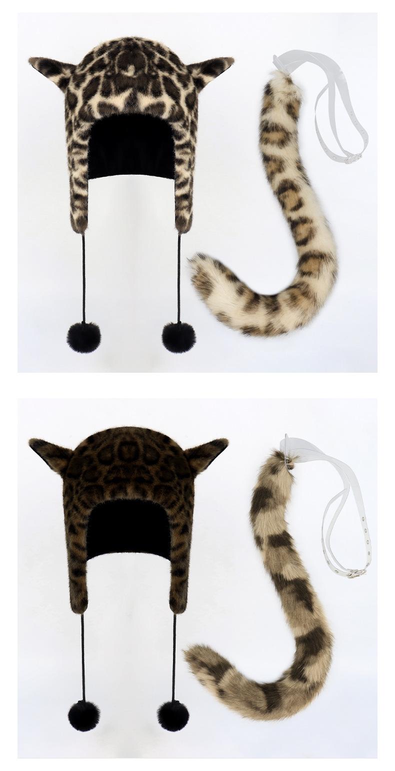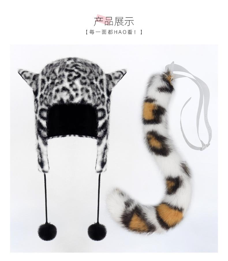 Una generación de sombrero de felpa de leopardo otoño e invierno cálido sombrero protector de orejas cola de animal leopardo multicolor sombrero baotou engrosado