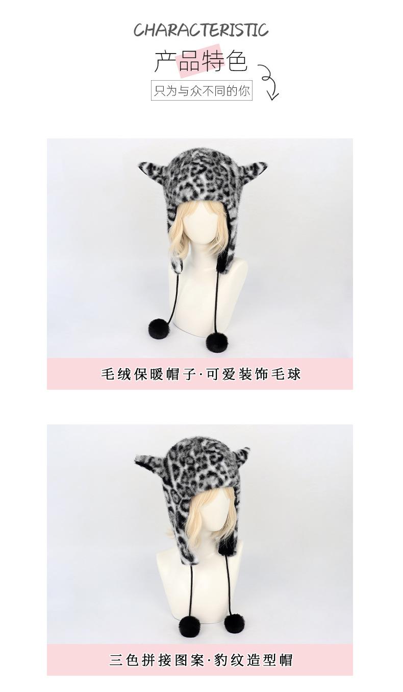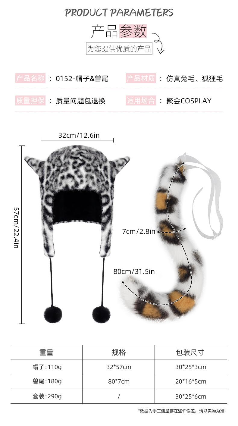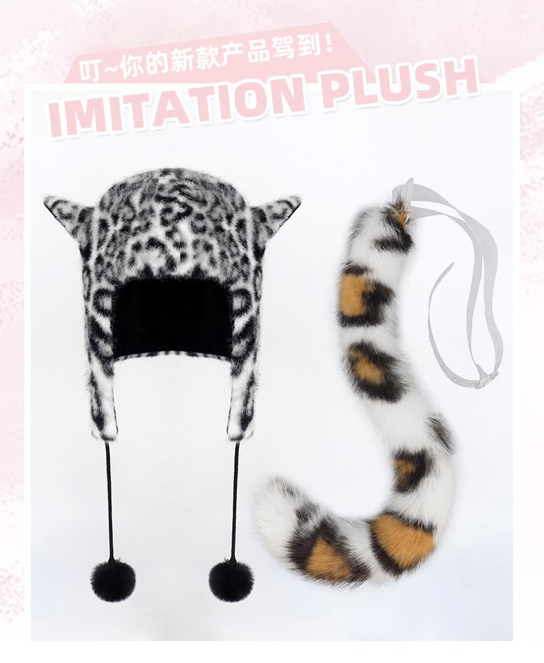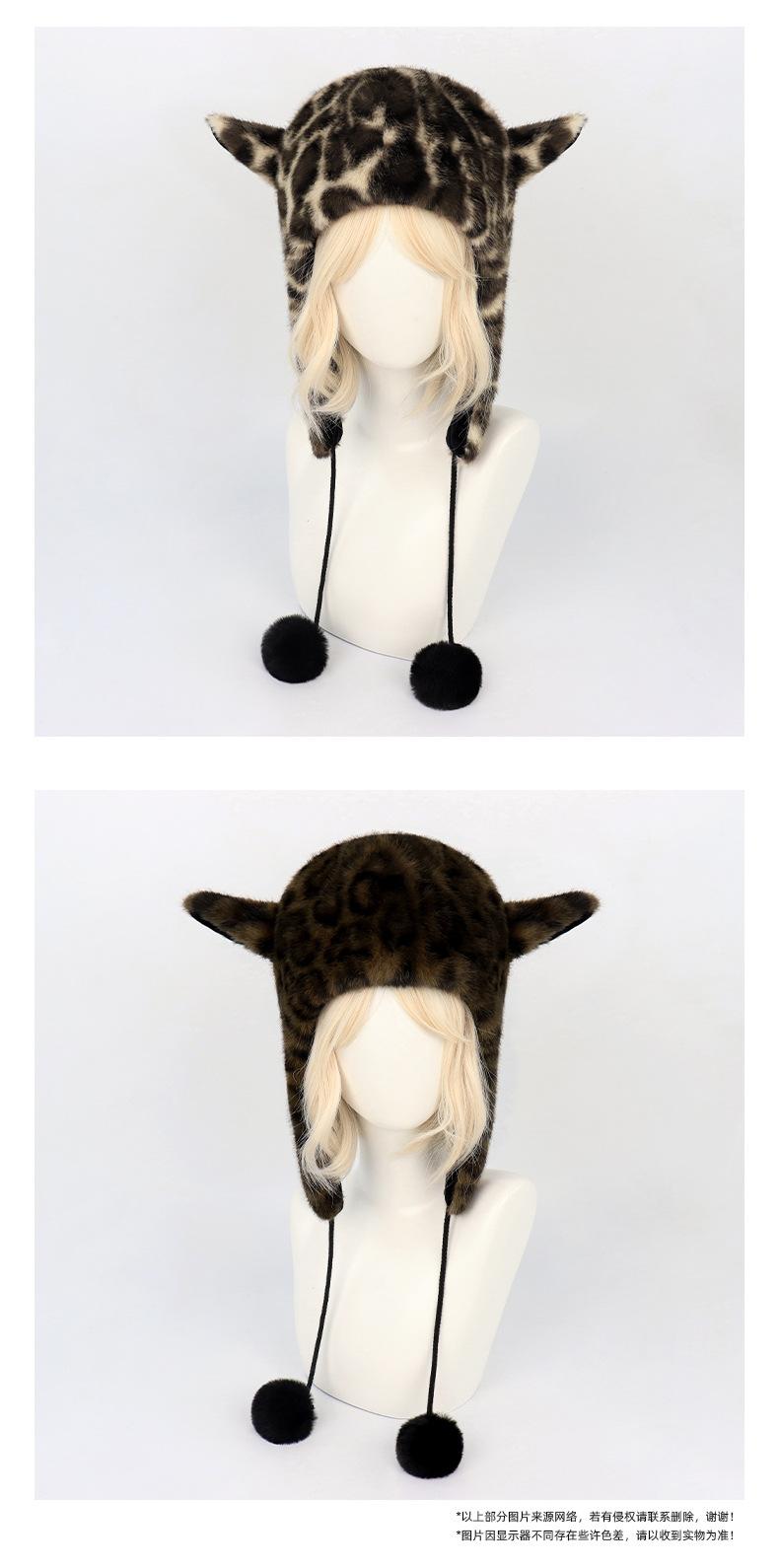Una generación de sombrero de felpa de leopardo otoño e invierno cálido sombrero protector de orejas cola de animal leopardo multicolor sombrero baotou engrosado