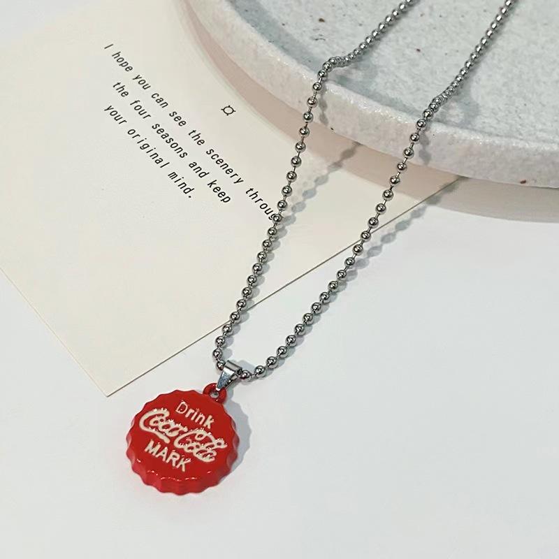Collar con colgante de acero de titanio estilo hip hop con diseño creativo, tapa de botella de cola roja, disco, resistente a la decoloración, accesorios para parejas, cadena para suéter