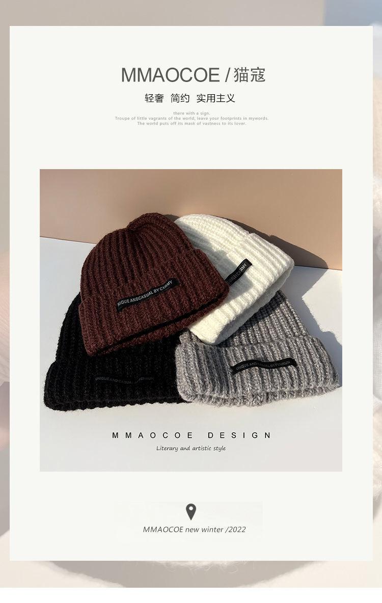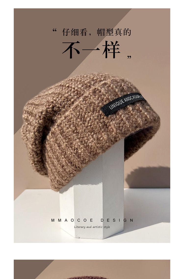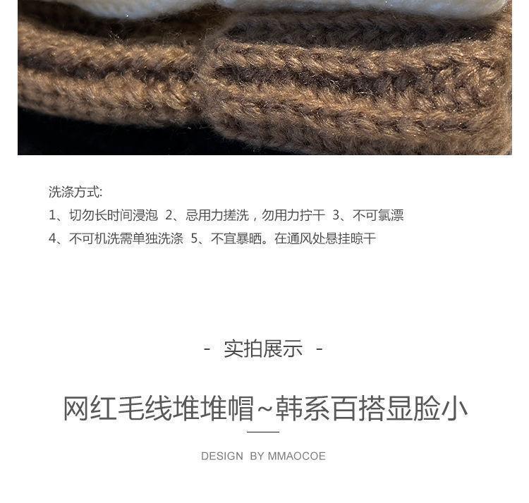 Gorro de lana para mujer, estilo coreano, holgado, cálido, de punto, para otoño e invierno, con cabeza grande y cara pequeña.