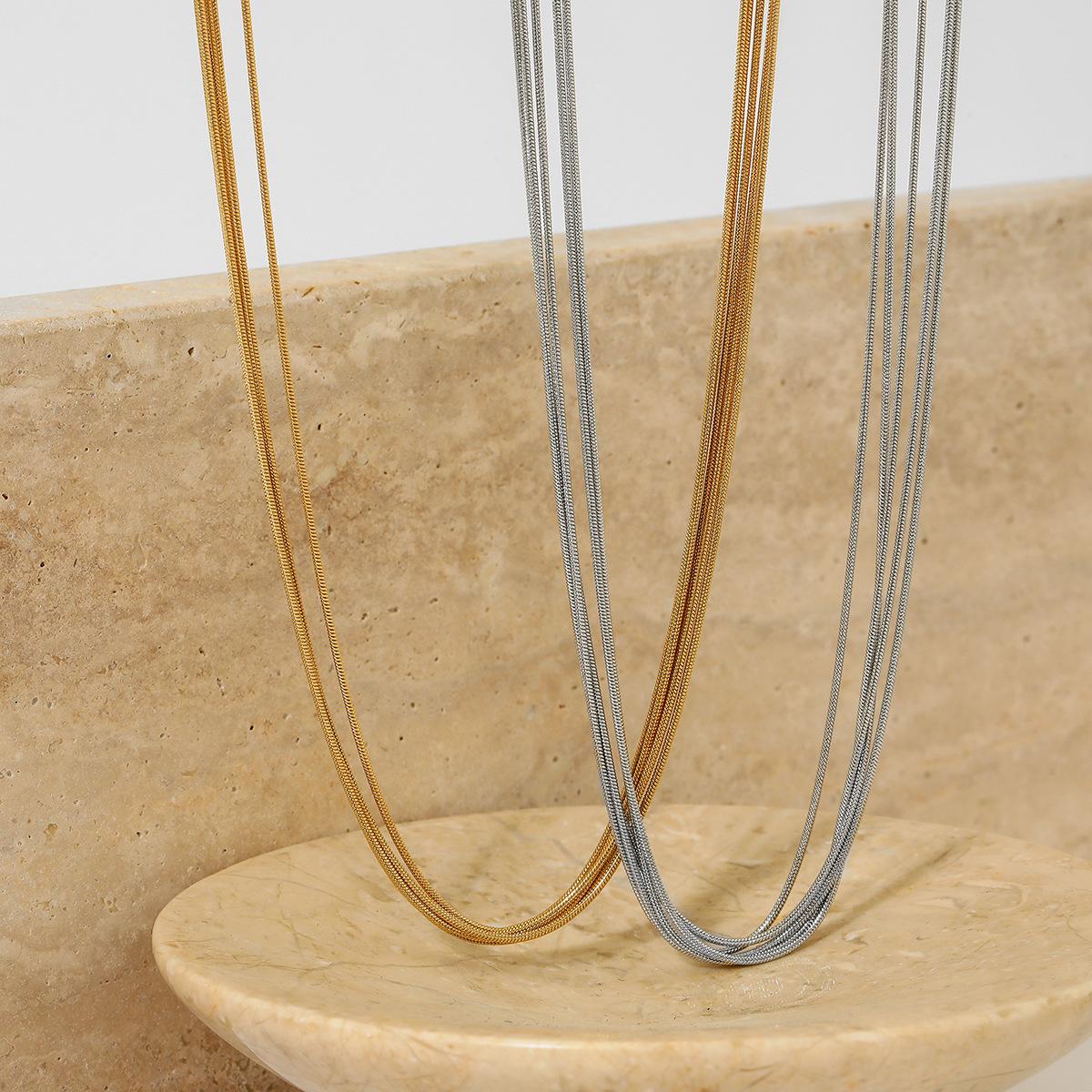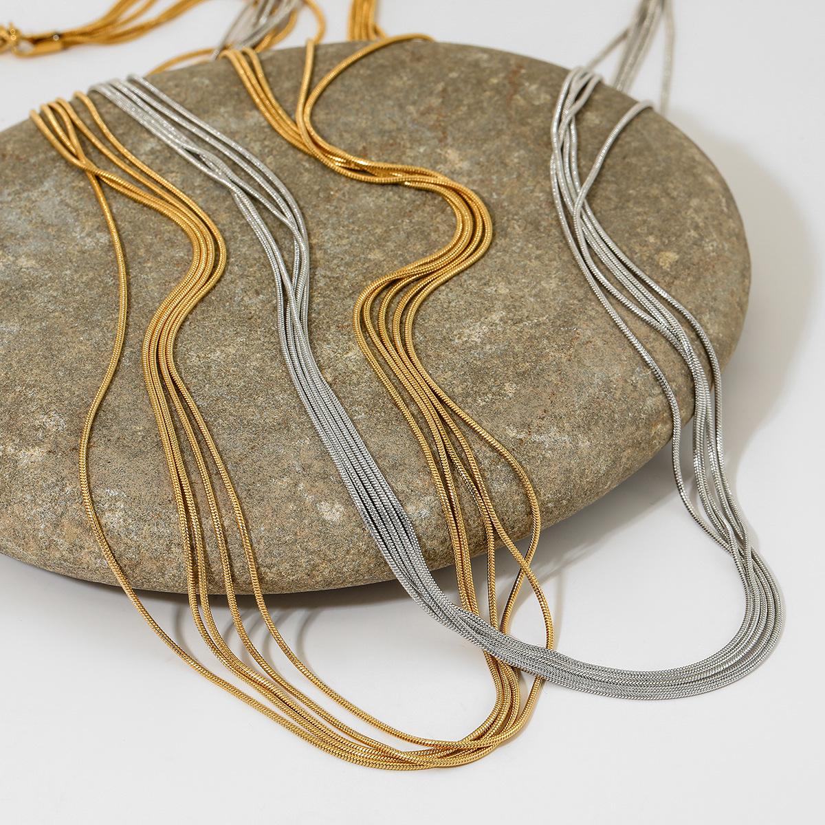 Collar de cadena multicapa sencillo y nuevo para mujer, cadena de sudor ligera de lujo personalizada de estilo hip hop, joyería de acero inoxidable de alta calidad para otoño e invierno.