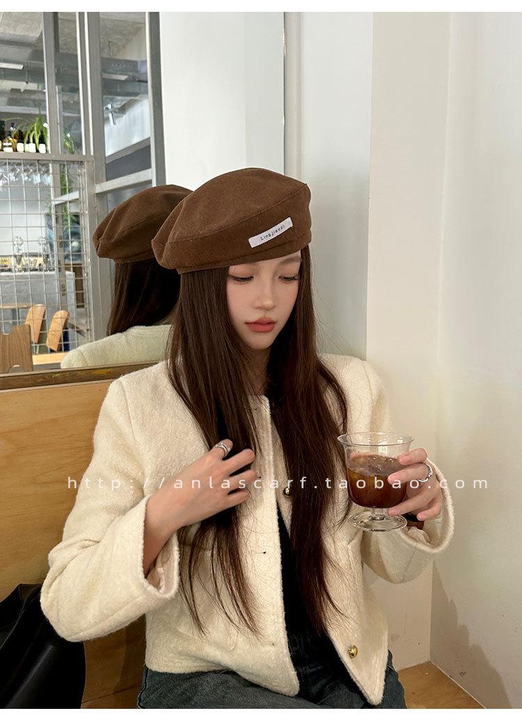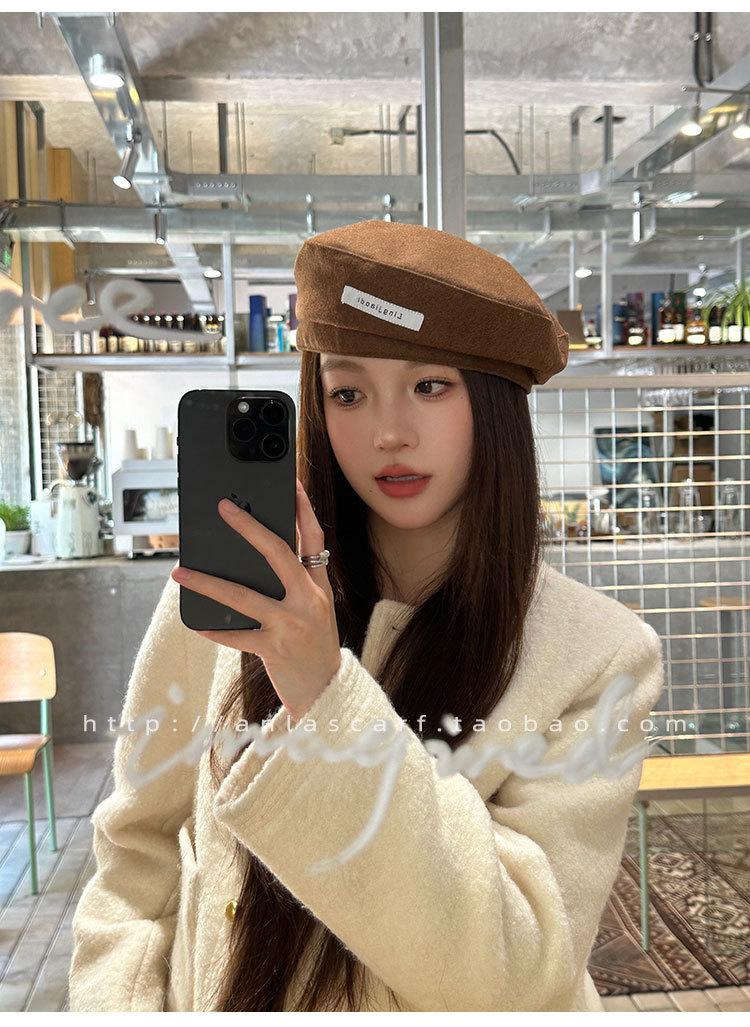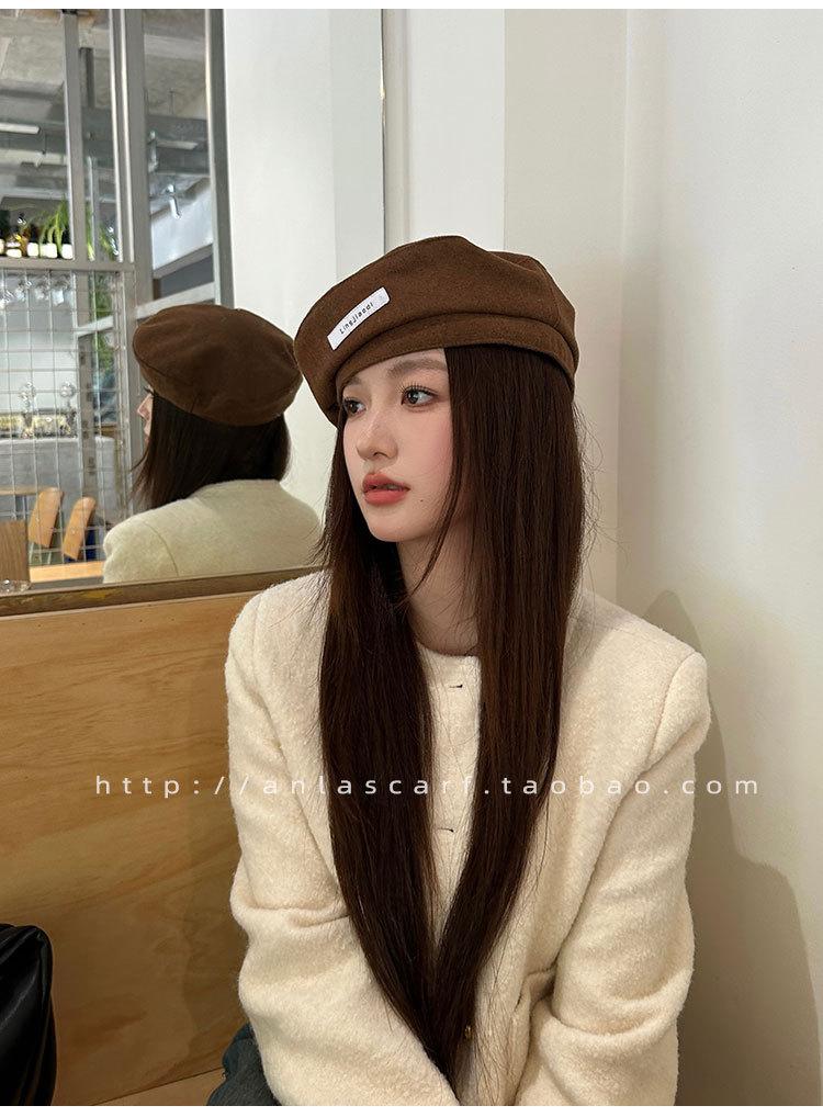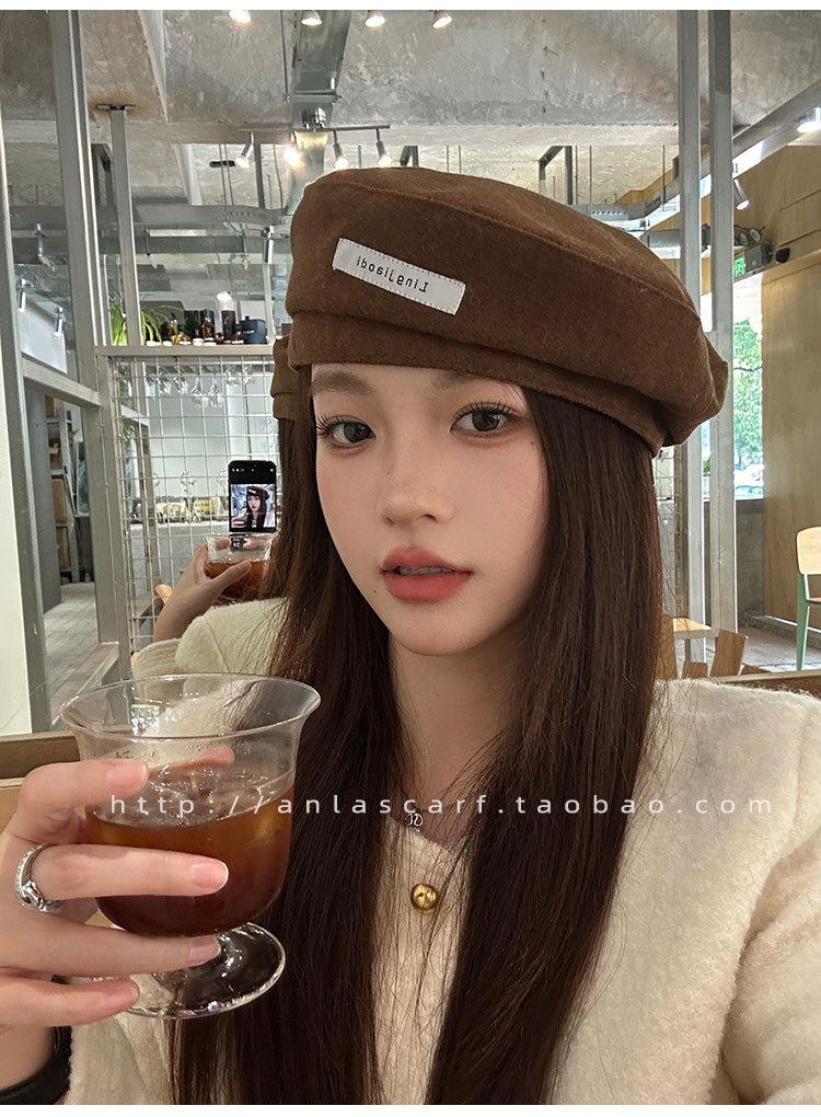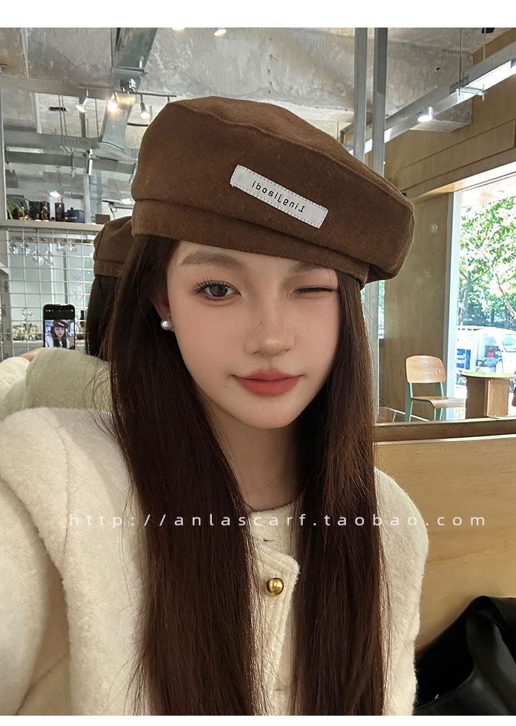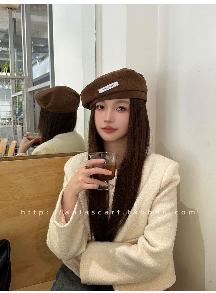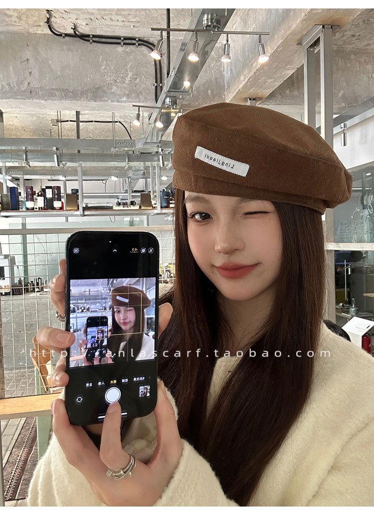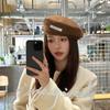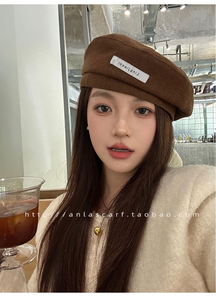 Boina de Lana de Diseñador Nicho de Corea del Sur para Mujer Retro Artística Combinable Casual con Adhesivo Otoño e Invierno Sombrero de Pintor