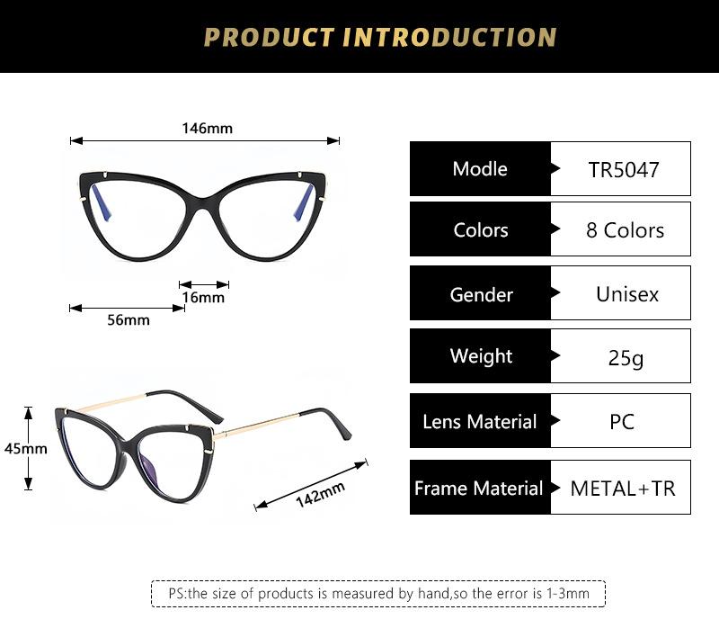 Nuevo clásico personalidad retro montura de gafas anti-luz azul ins moda callejera europea y americana metal ojo de gato espejo plano