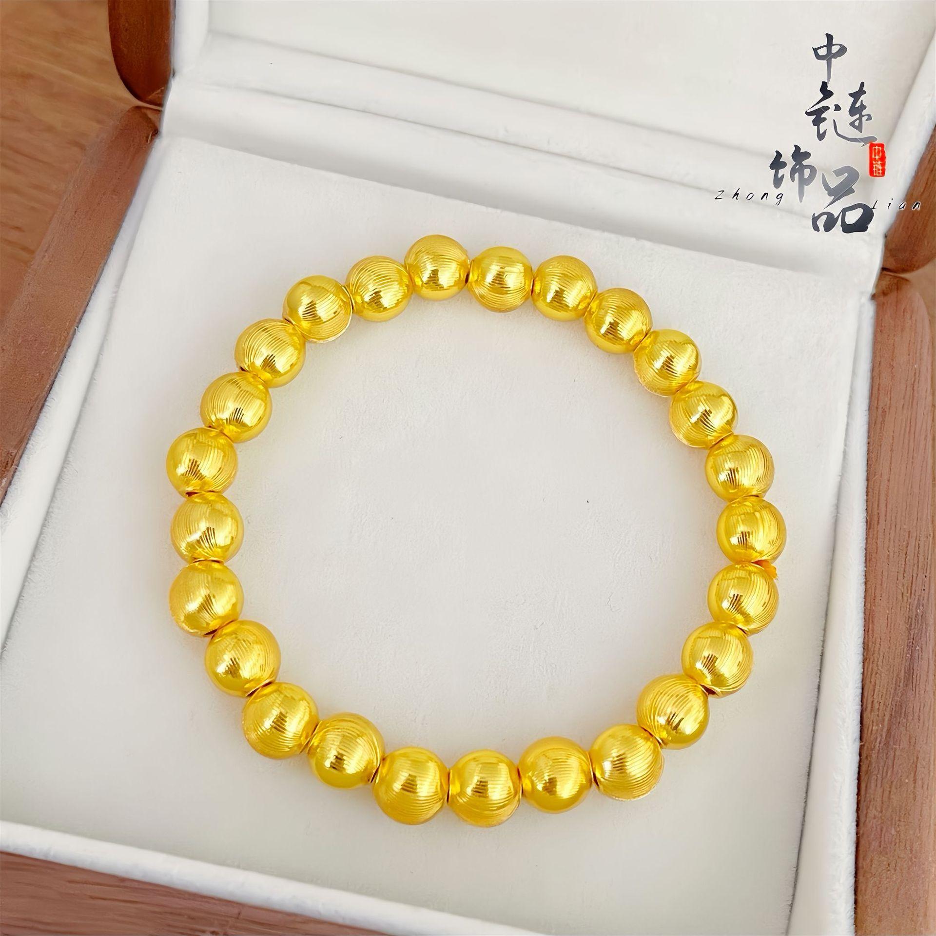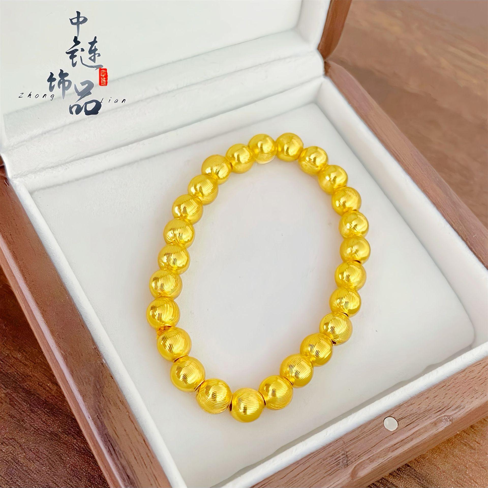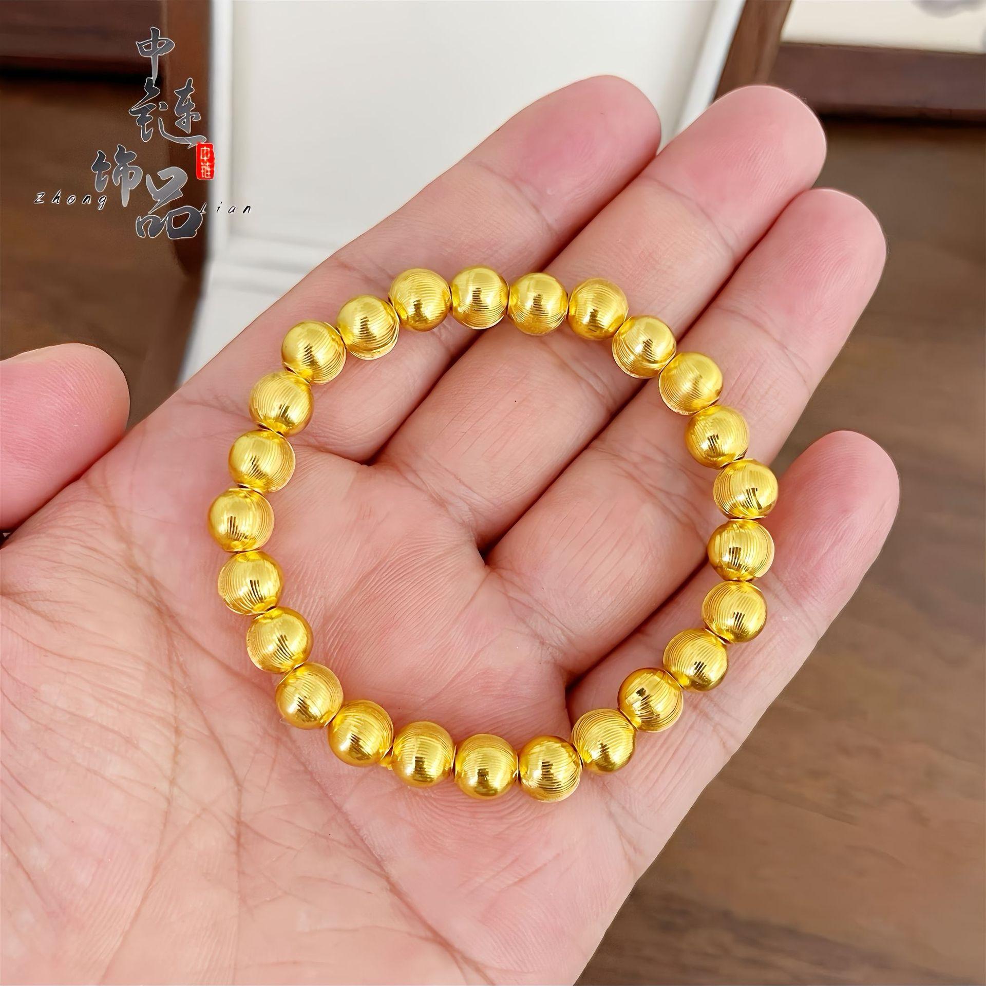 Tienda de oro con alta retención de color pulsera de cuentas ojo de gato de oro antiguo pulsera de cuentas de rayas de oro vintage accesorios diy