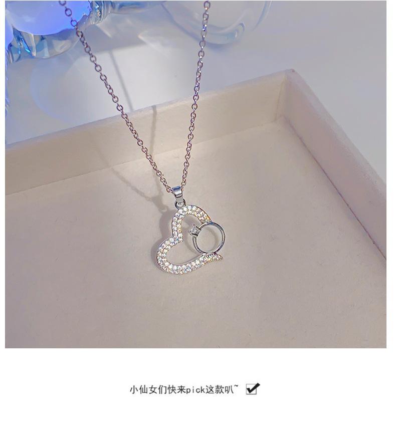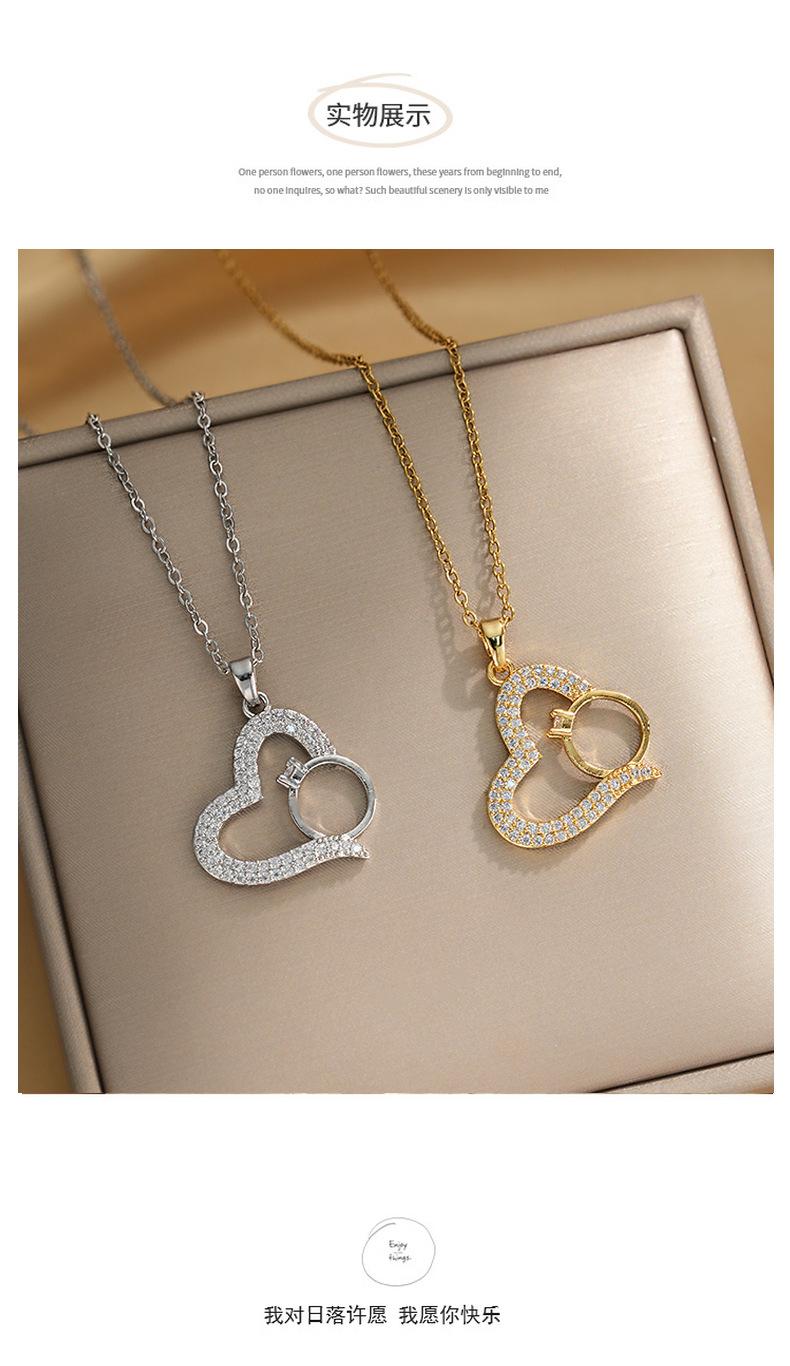 Collar con colgante de anillo de amor transfronterizo para mujer, con microincrustaciones de diamantes, cadena de clavícula de moda, joyería exquisita, Europa y Estados Unidos