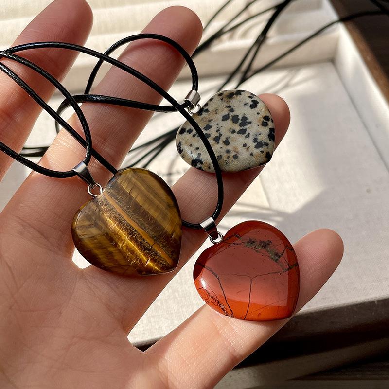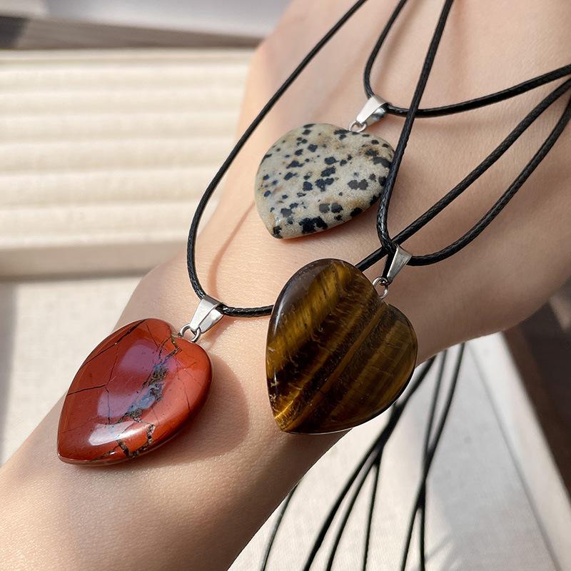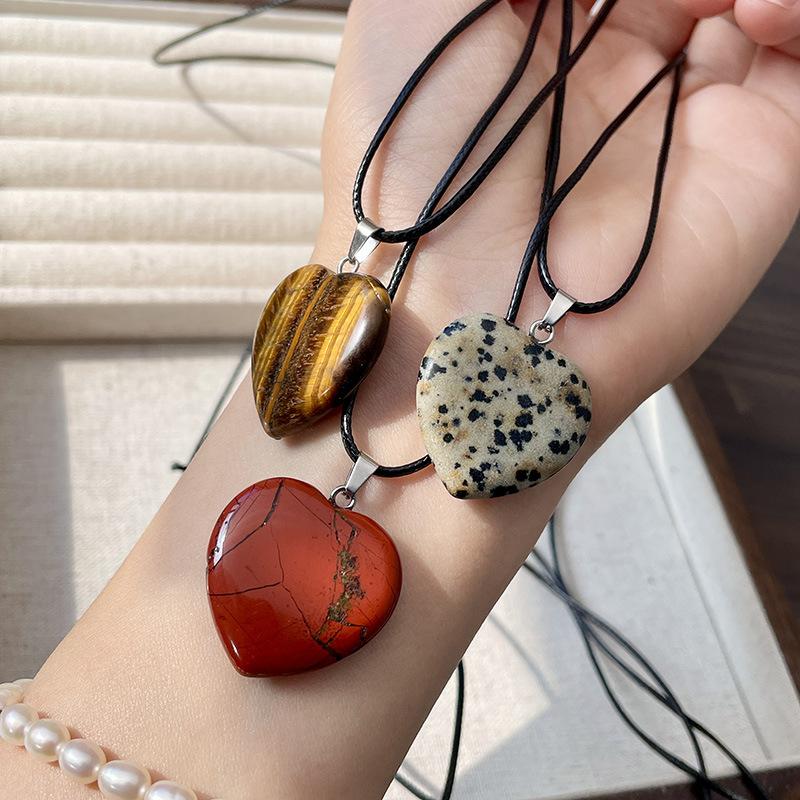 A gray leopard print, B wine red heart, C coffee color tiger eye stone
