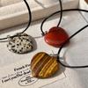 Colgante de amor de cuerda negra de piedra natural, cadena larga para suéter, collar de temperamento con cadena de clavícula de nicho de moda simple para mujer, accesorios