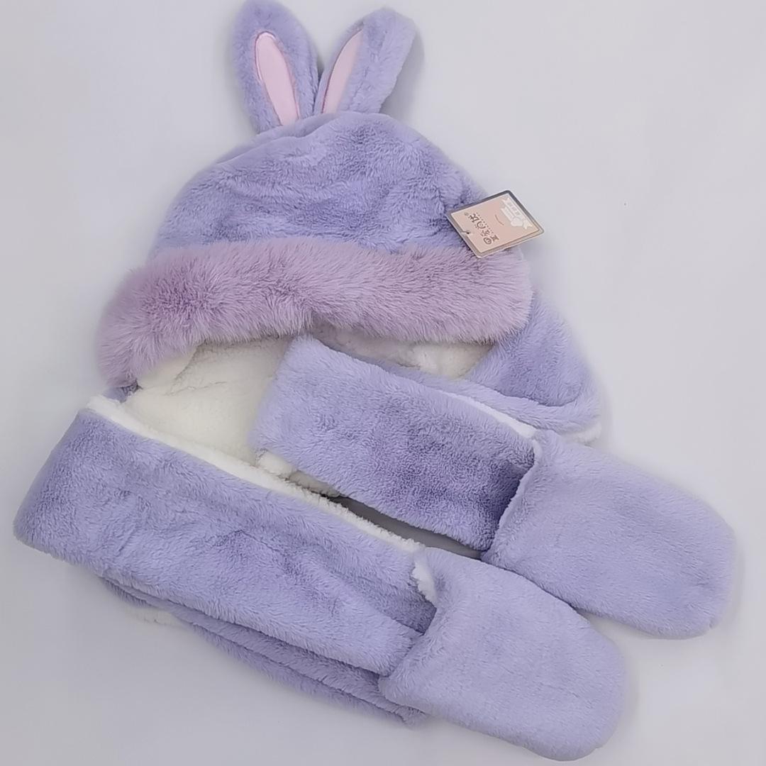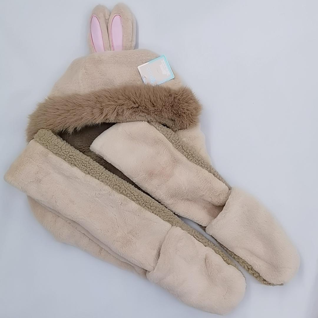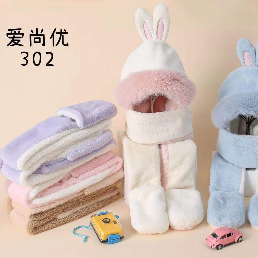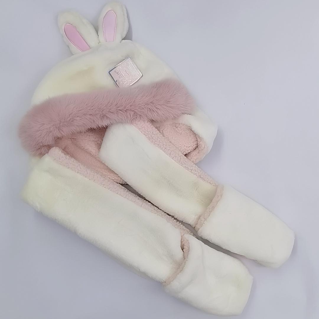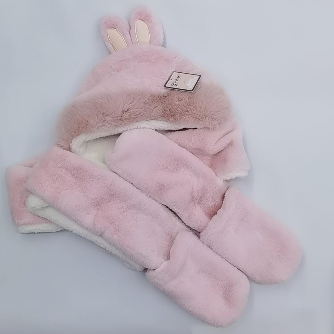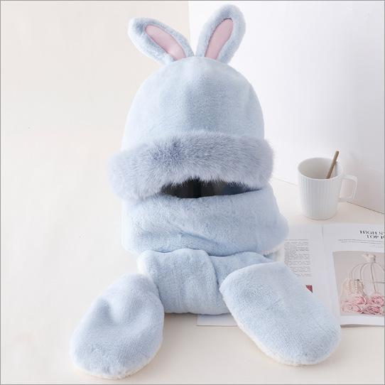 Aishangyou Lindo Sombrero con Orejas de Conejo Bufanda para Mujer Otoño e Invierno Combinación Universal Guantes Cálidos de Ciclismo de Una Pieza Juego de Tres Piezas