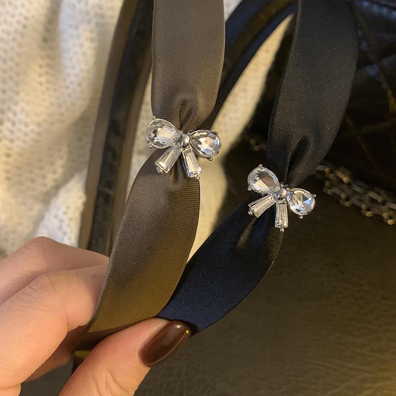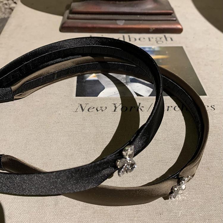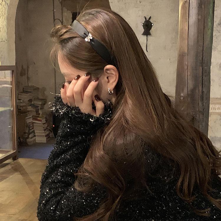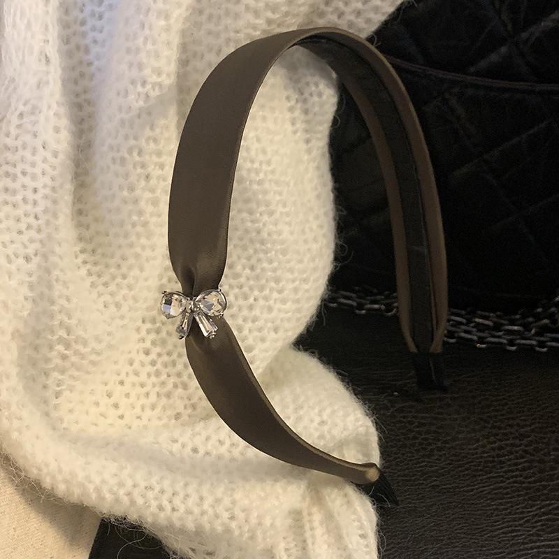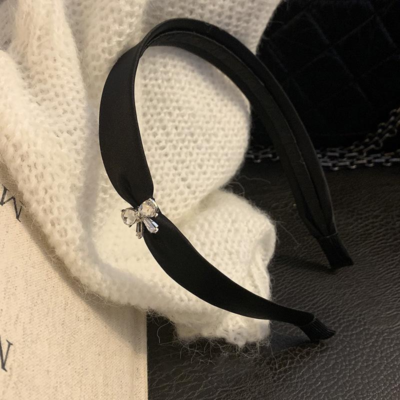 Diadema con lazo de satén y seda con brillantes diamantes de moda coreana 2024, elegante y versátil, horquilla para el cabello, accesorio para el cabello.