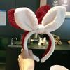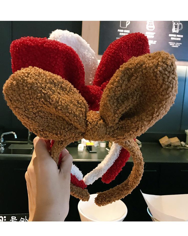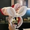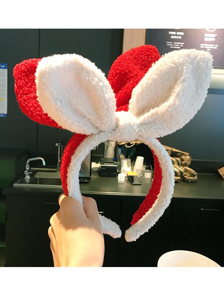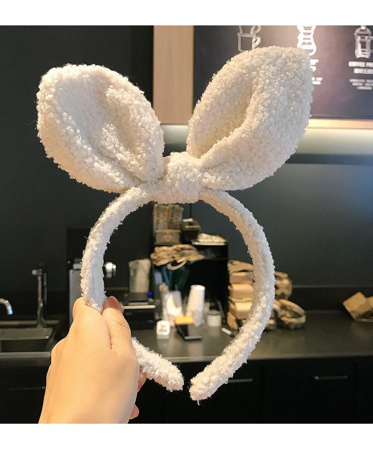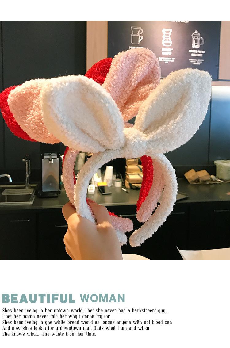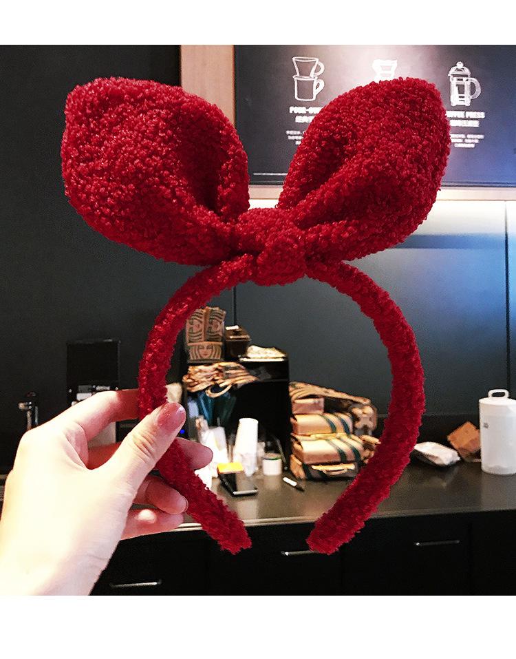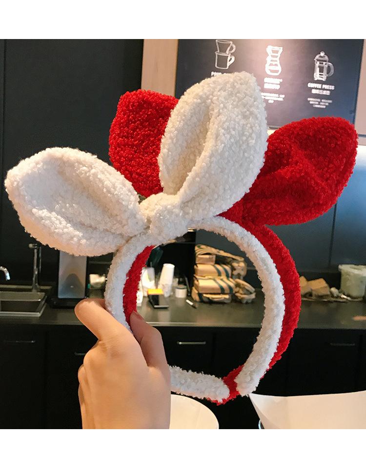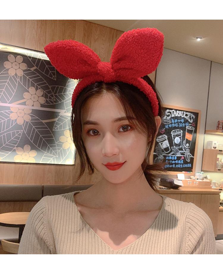 Diadema con lazo y orejas de conejo de peluche, estilo coreano, para otoño e invierno, con pinza para el pelo, ideal para celebrantes de Internet.